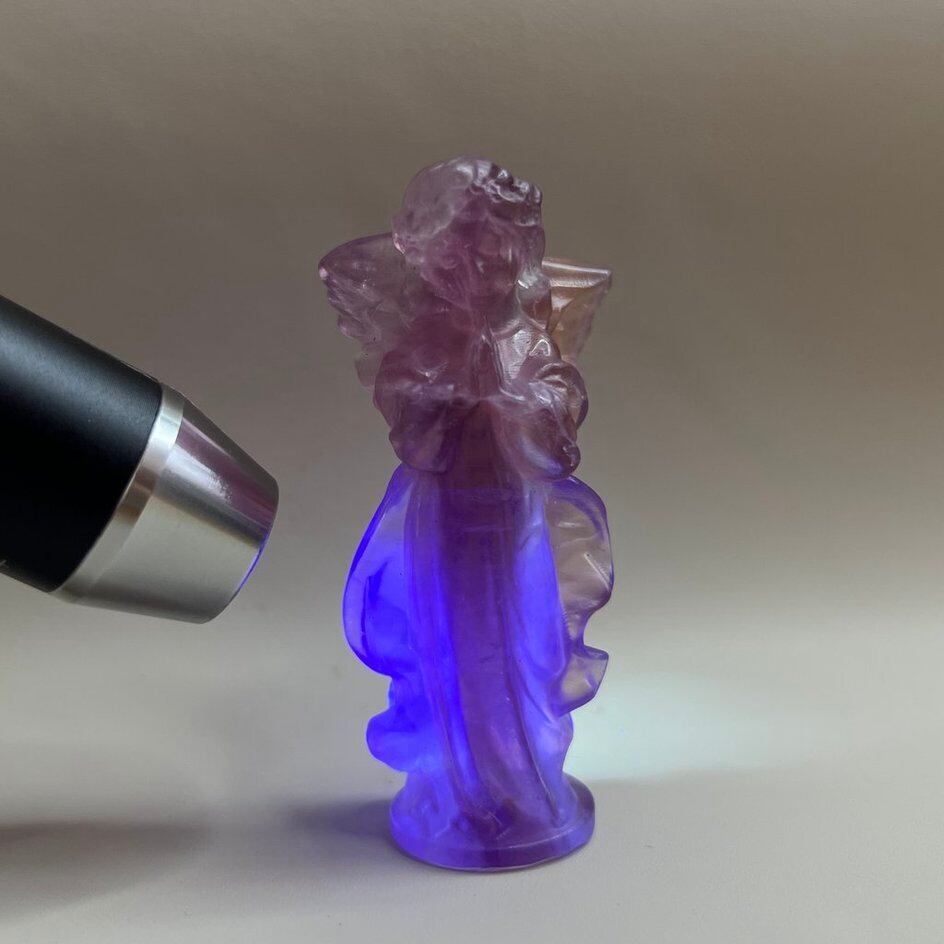 さらにこの子は、ブラックライトを当てるとふんわり淡く蛍光し、幻想的な雰囲気をまといます。昼と夜で異なる表情を楽しめる、優しい祈りの波動を持つ彫刻です。