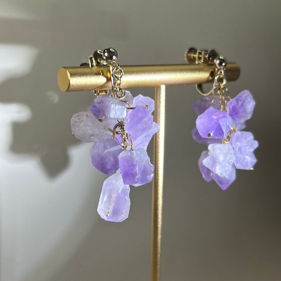 シリウスアメジスト原石イヤリング【005】
