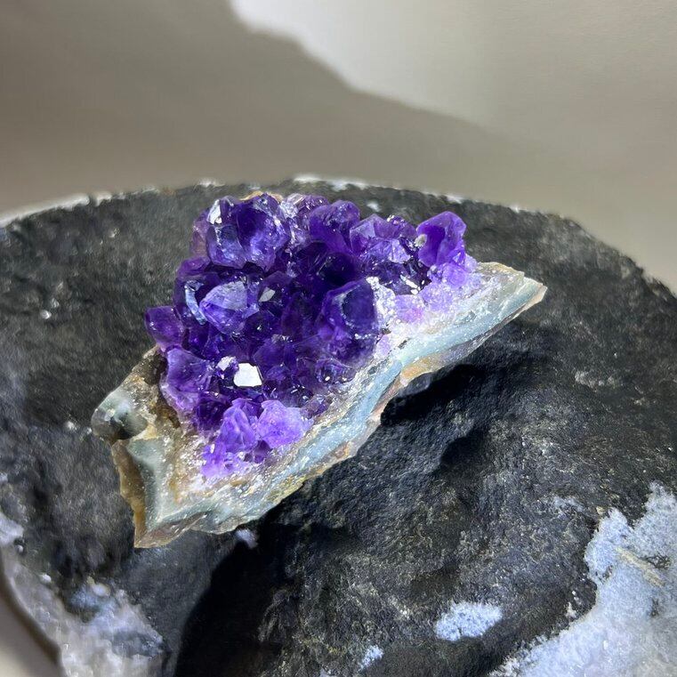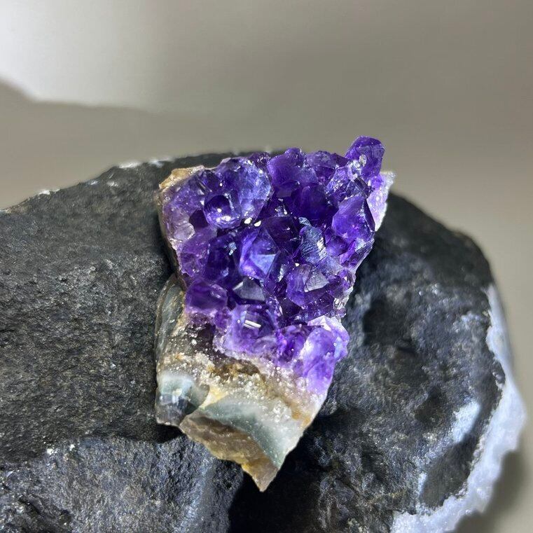 母岩のグレイッシュトーンと濃紫のコントラストが、自然のアートピースとして映える