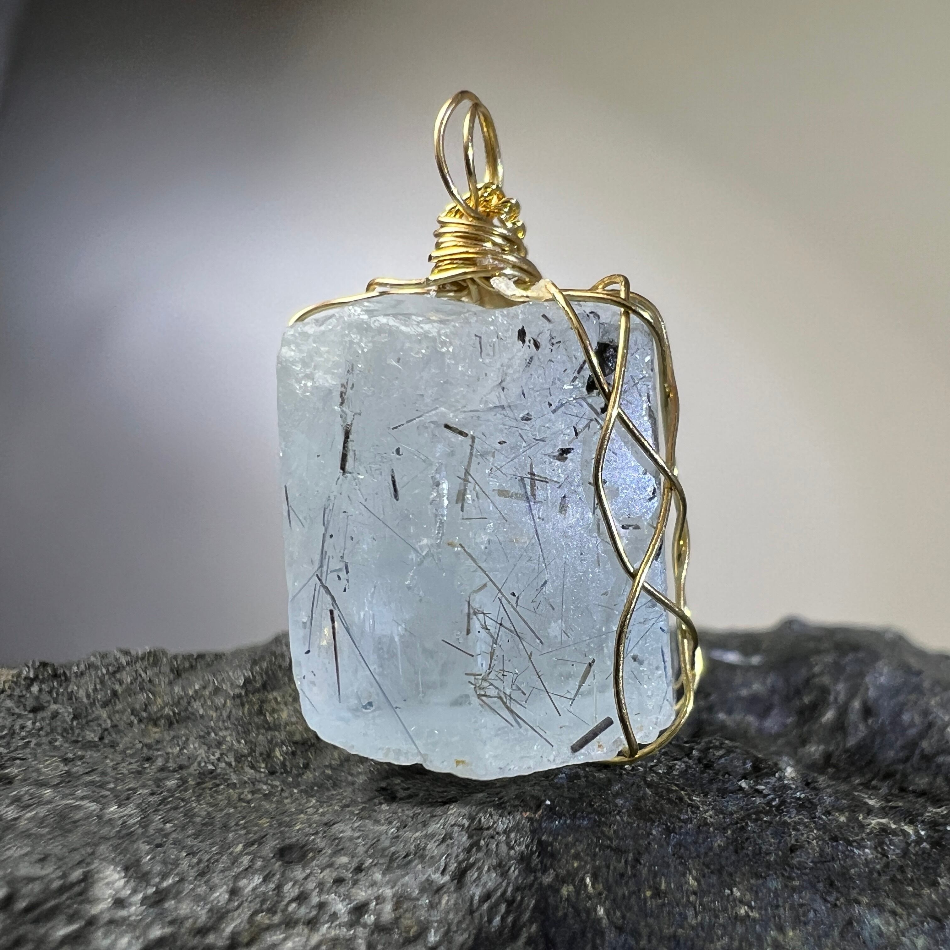 心の波を静かに整えてやさしく本音を伝えたい人のためのアクアマリン原石ワイヤーペンダント【7-28】