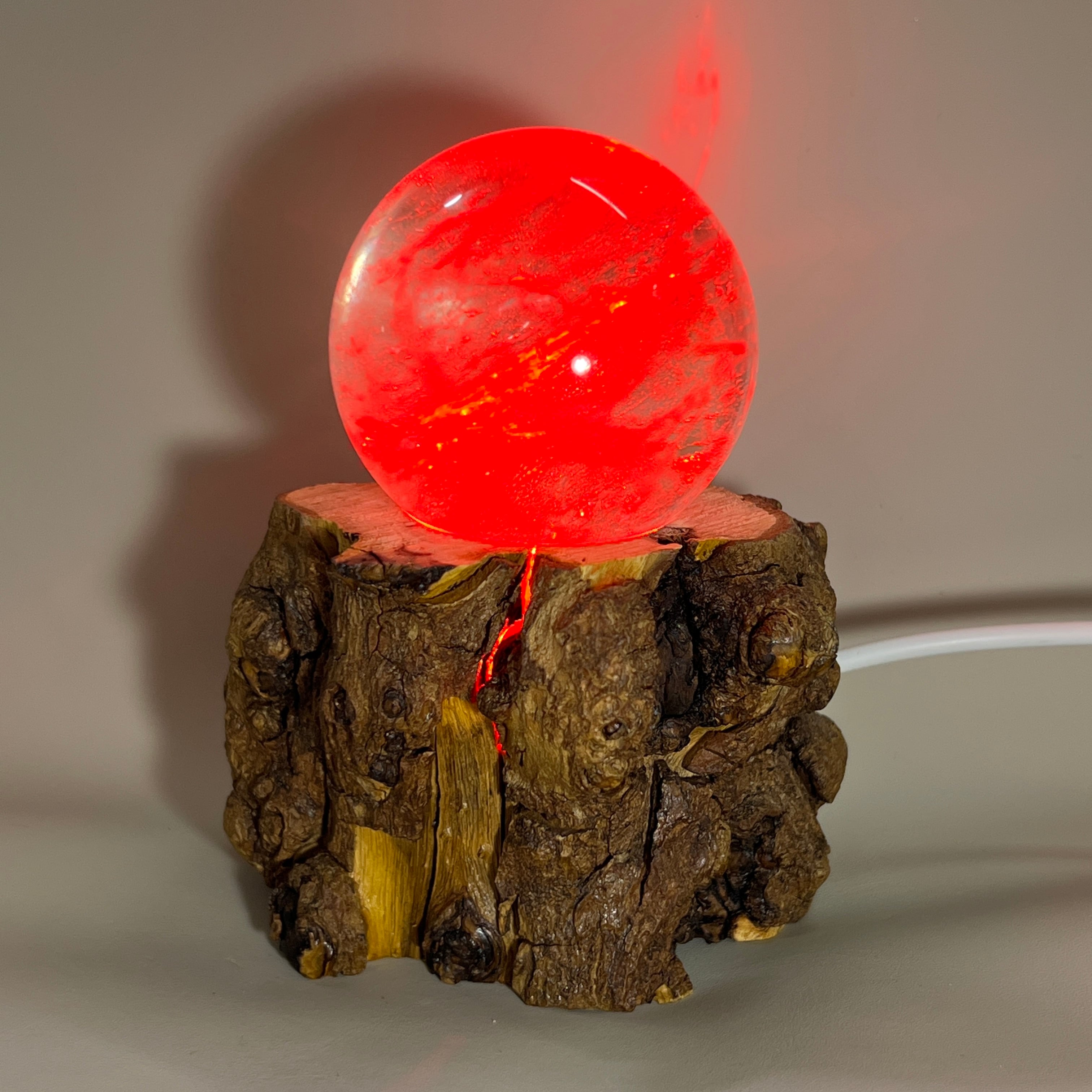 木の台座内部のLEDが赤・橙・緑・青・ピンクの五色へと