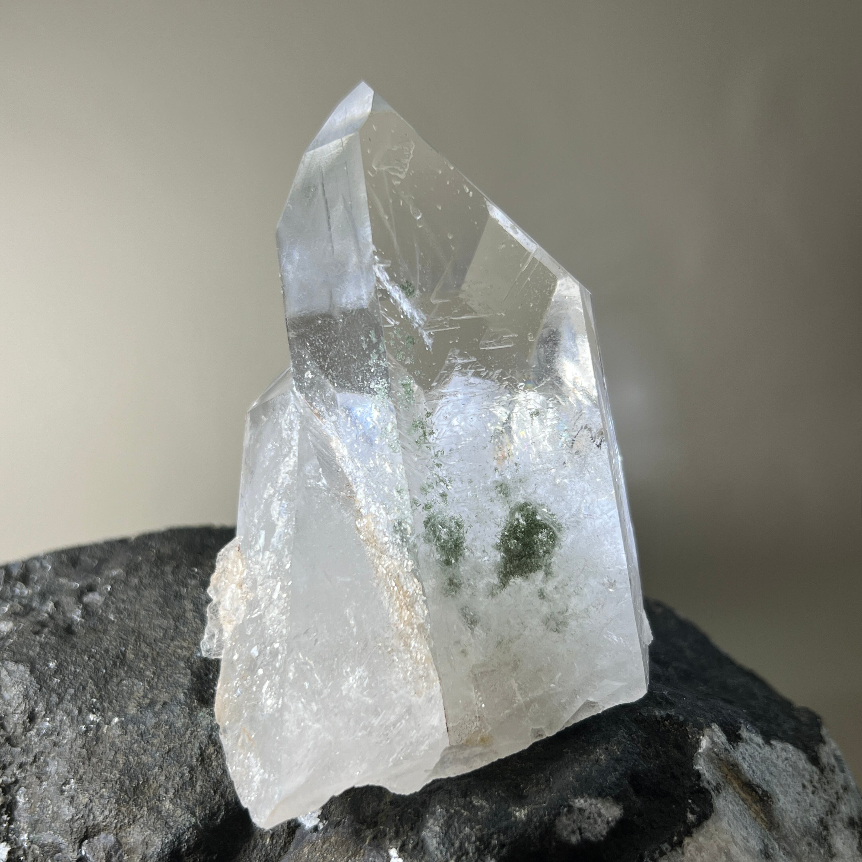 ガーデンクォーツは、内部の微細な入り込みが小さな景色のように見えることからその名で呼ばれ、自然の移ろいを映す石として親しまれてきました。レムリアンクォーツは側面の細かな横ラインが象徴的で、知恵の記憶を伝える石として語られてきました。透明度の中に表情が宿る佇まいは、観賞や瞑想の時間のパートナーとしても愛されています。