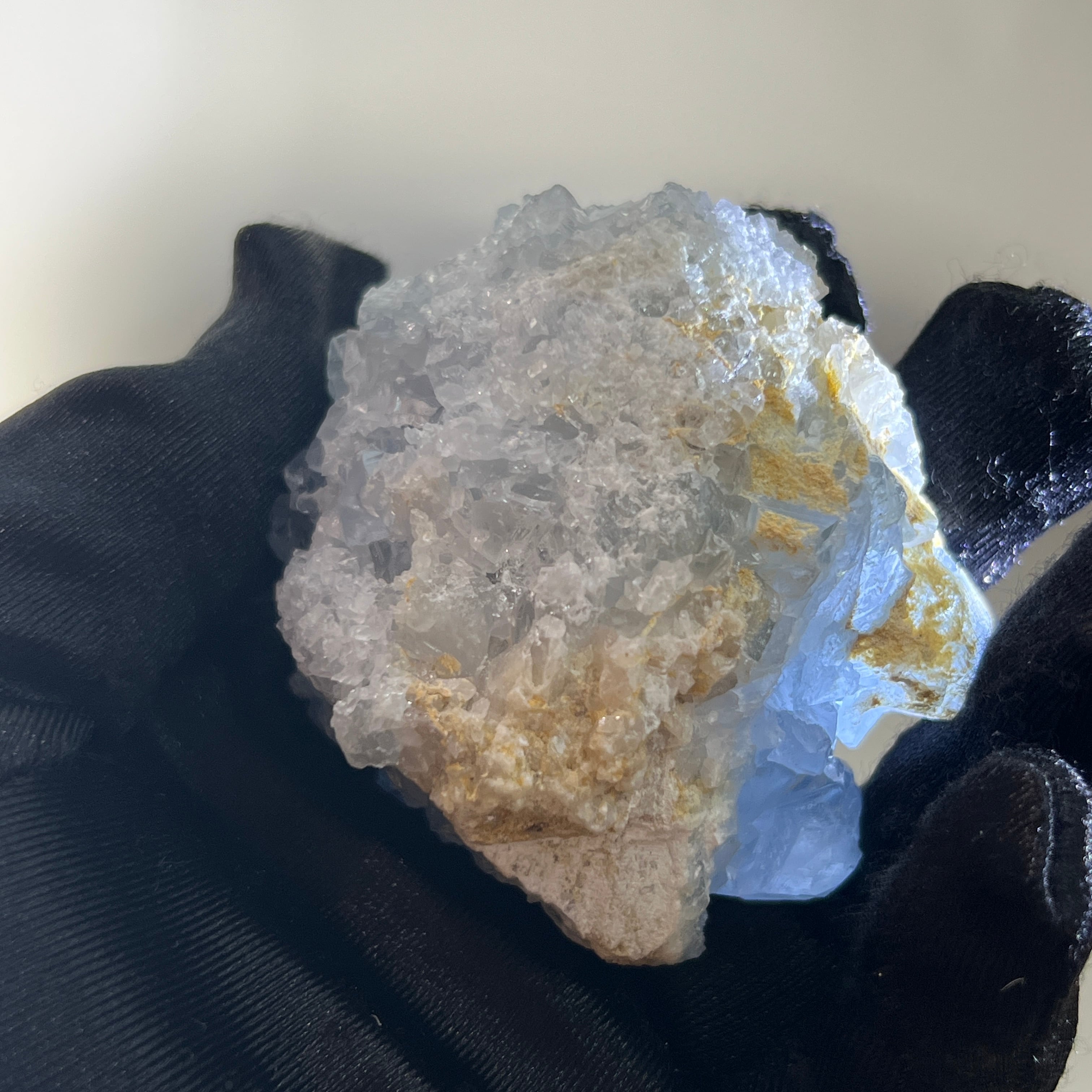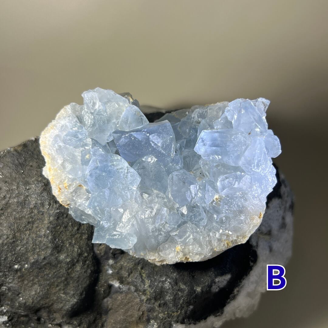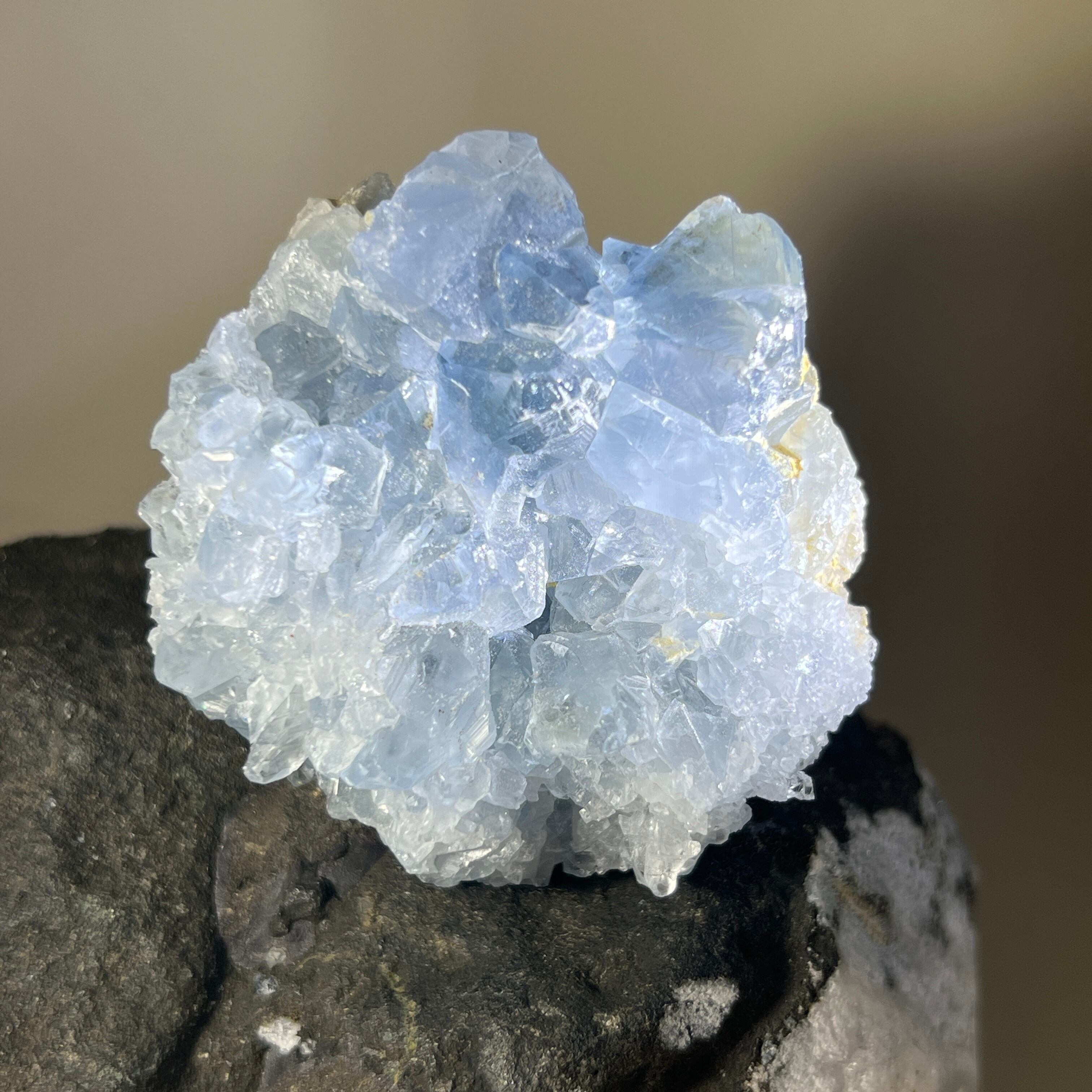 セレスタイトの名は「天」を意味する言葉に由来し、澄んだ意識ややさしさを象徴する石として親しまれてきました。淡い空色と落ち着いた光沢が魅力で、古くから装飾や祈りの道具にも用いられてきた記録があります。クラスターは光を多方向に受け止め、結晶の重なりが静かな立体感を見せます。
