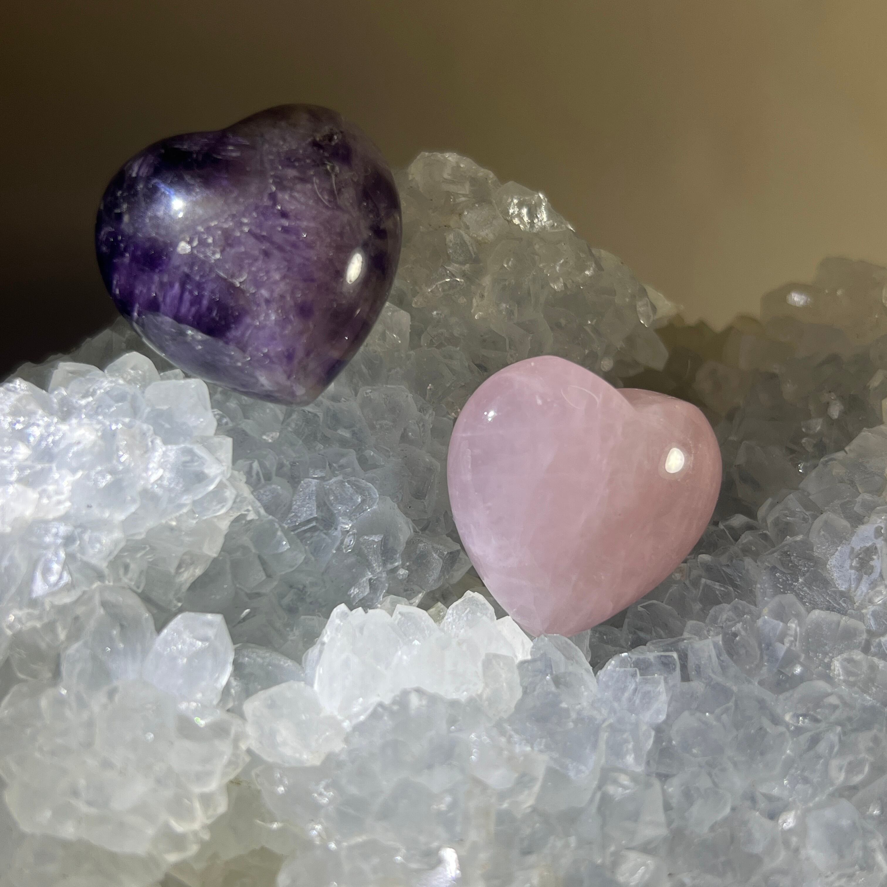 ミニローズクォーツハート・ミニアメジストハート セット