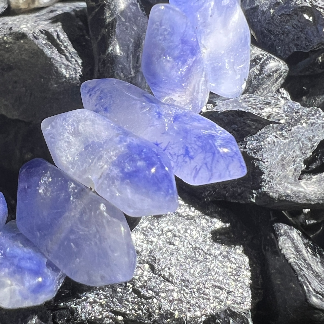 使用天然石:デュモルチェライト 1粒約11〜14mm(ダブルポイントカット調)