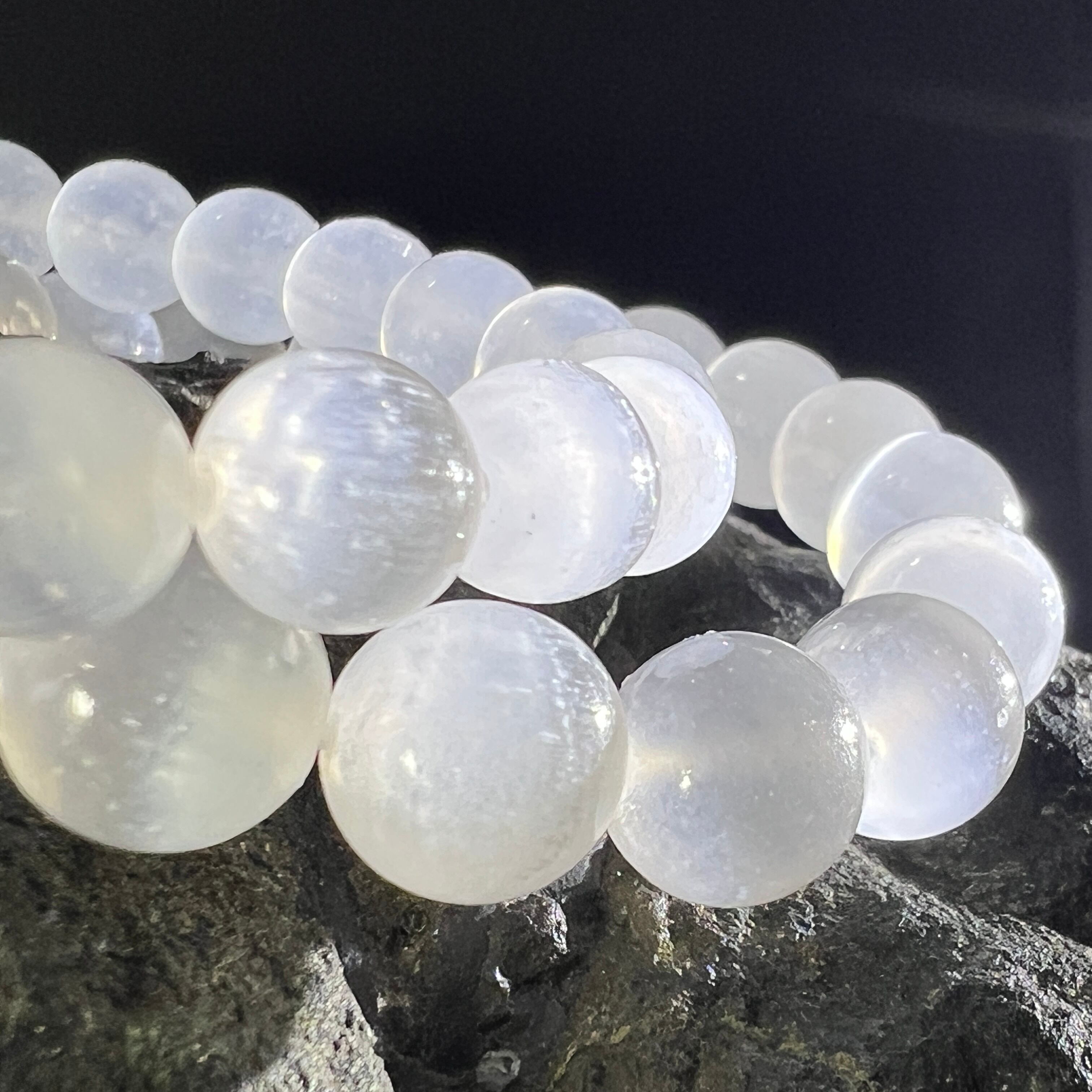 セレナイトは、月光のような乳白色の光がすっと広がる石です。