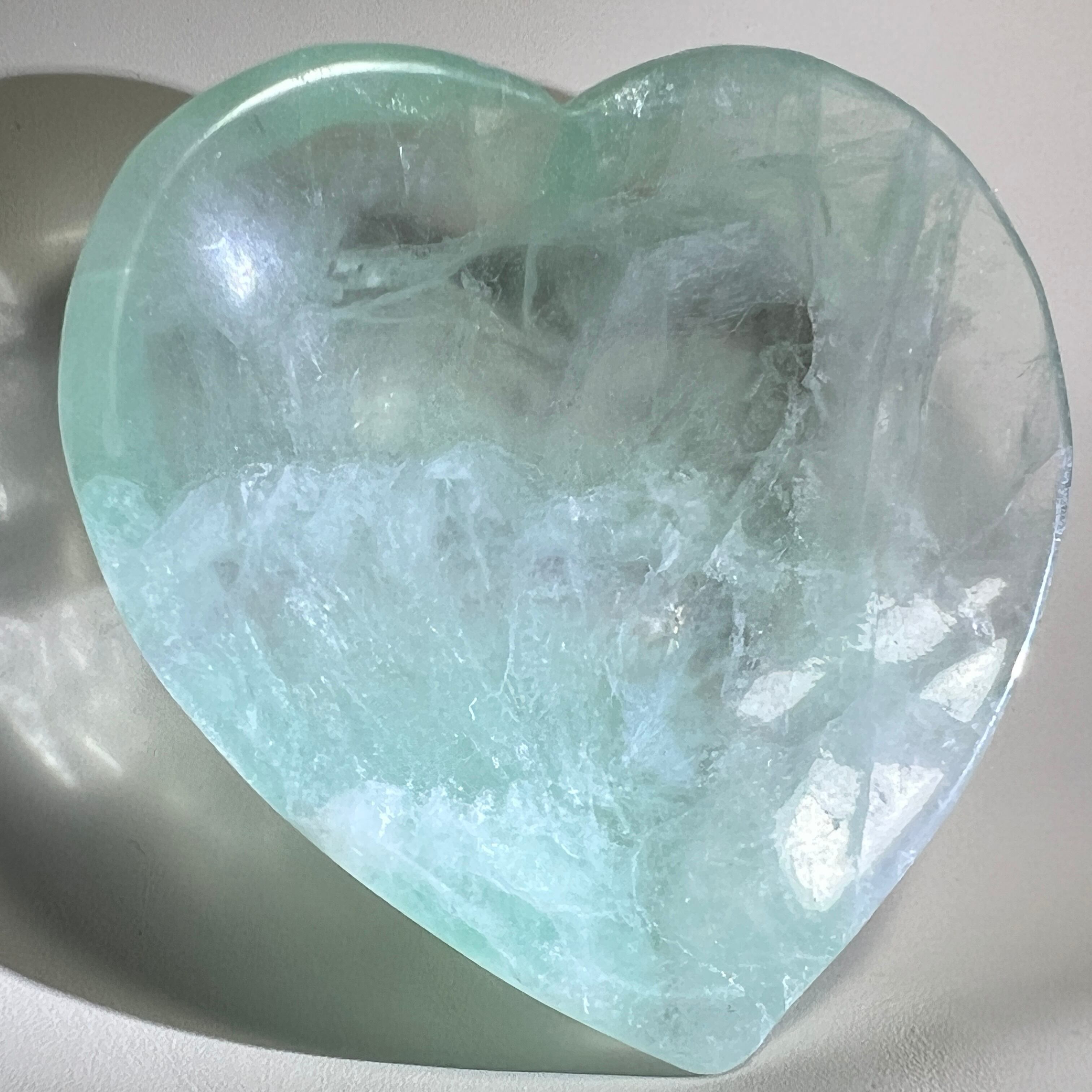 やさしさと癒しの波動が広がる、心を包み込むフローライトのハート皿です✨