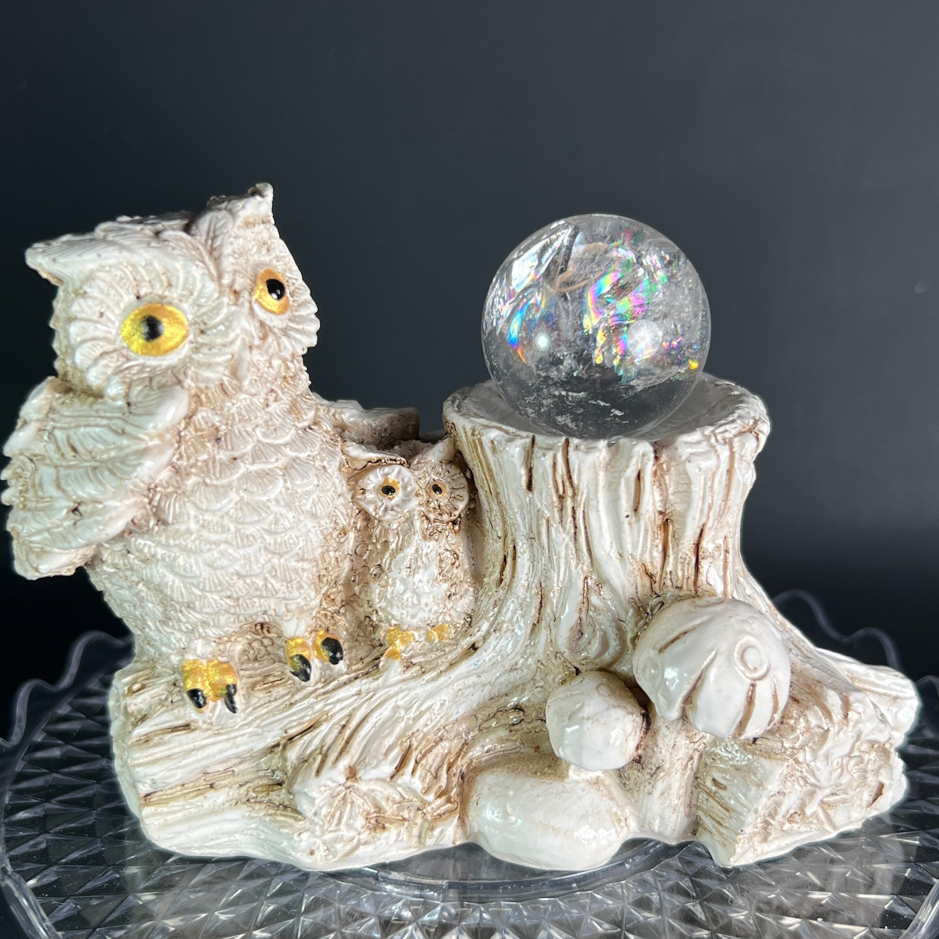 知恵とひらめきを授ける虹水晶とフクロウのミニ守護セット【11-23】