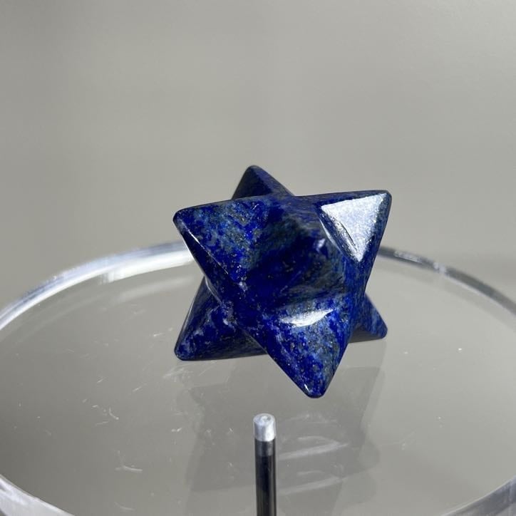 深い瑠璃色が印象的なラピスラズリを、マカバの立体形状に整えられたストーンです。