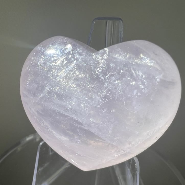 やわらかな淡桃色が心を包み込むようなローズクォーツのハート型原石です。