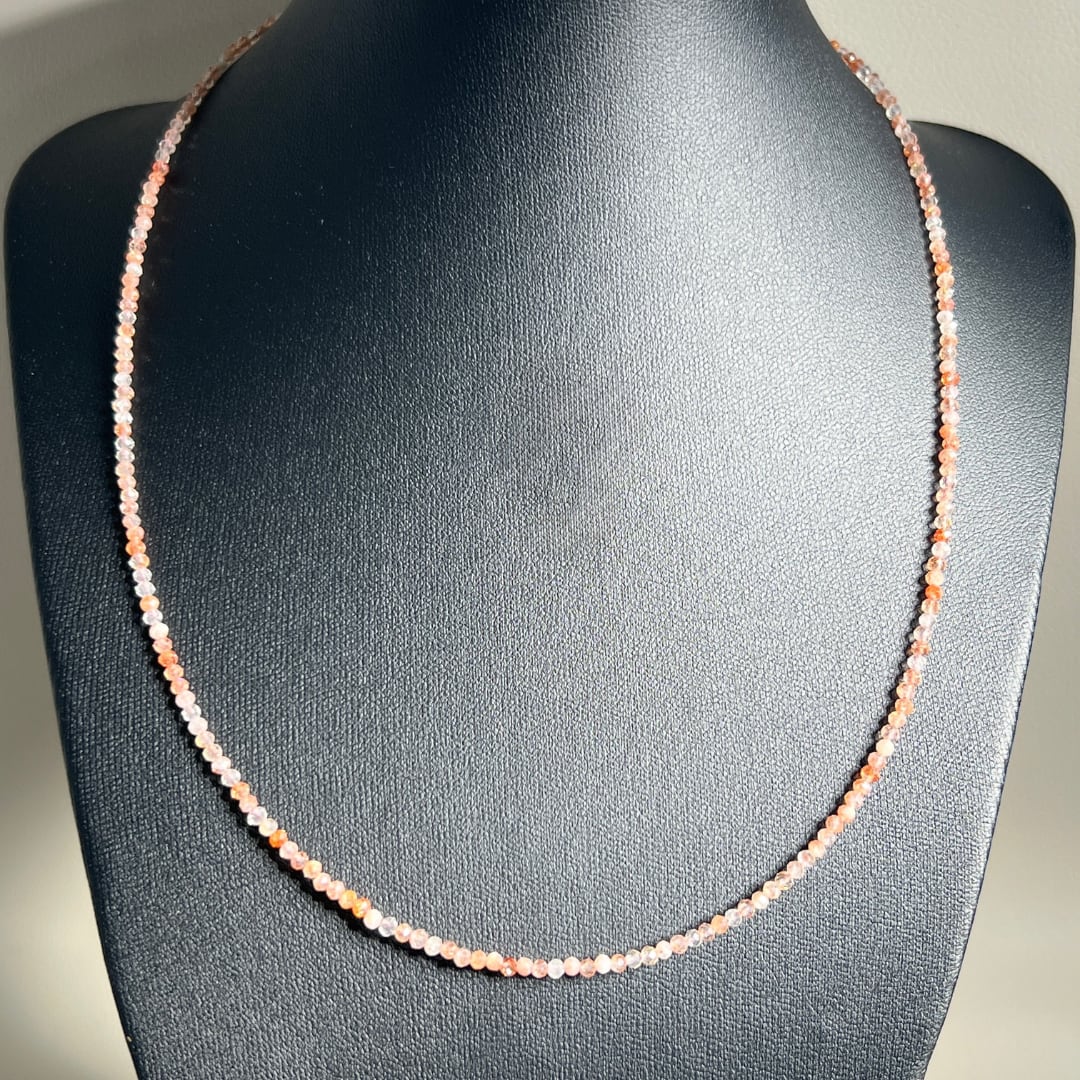 サンストーンならではのあたたかな橙色と、内包由来の表情が重なり合うネックレスです。