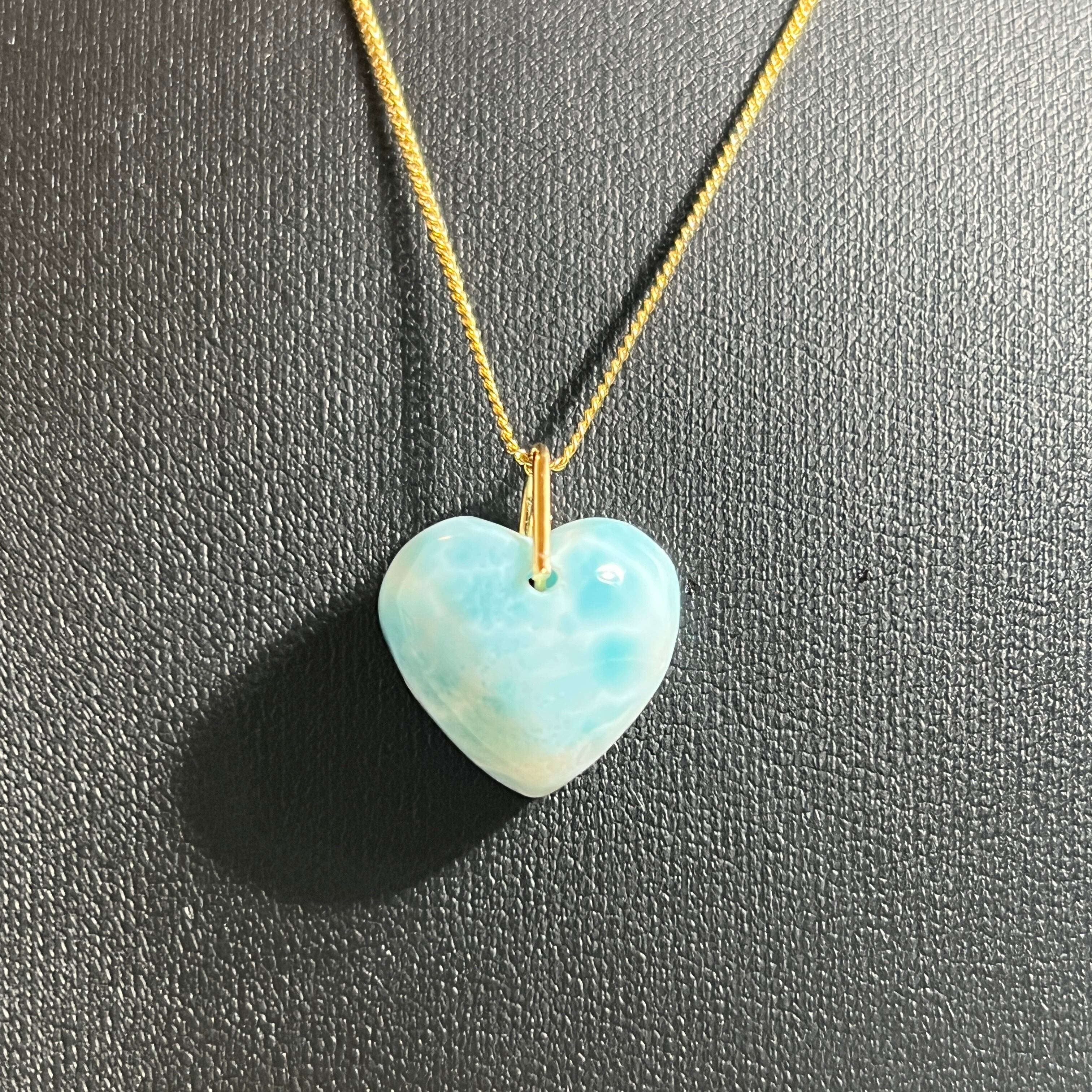 海の青とミルキーな白が溶け合うような、ラリマーのハート型ペンダントトップです。