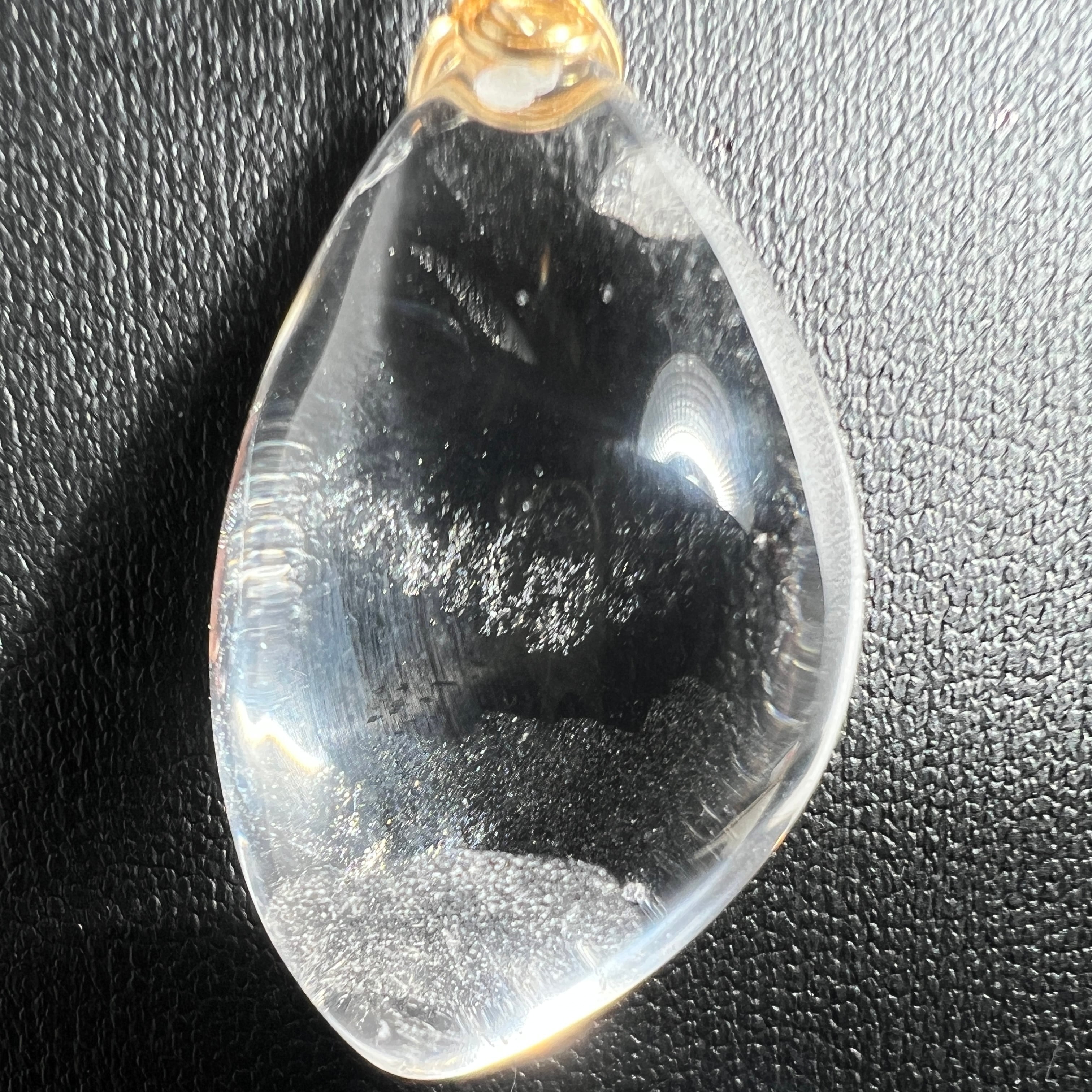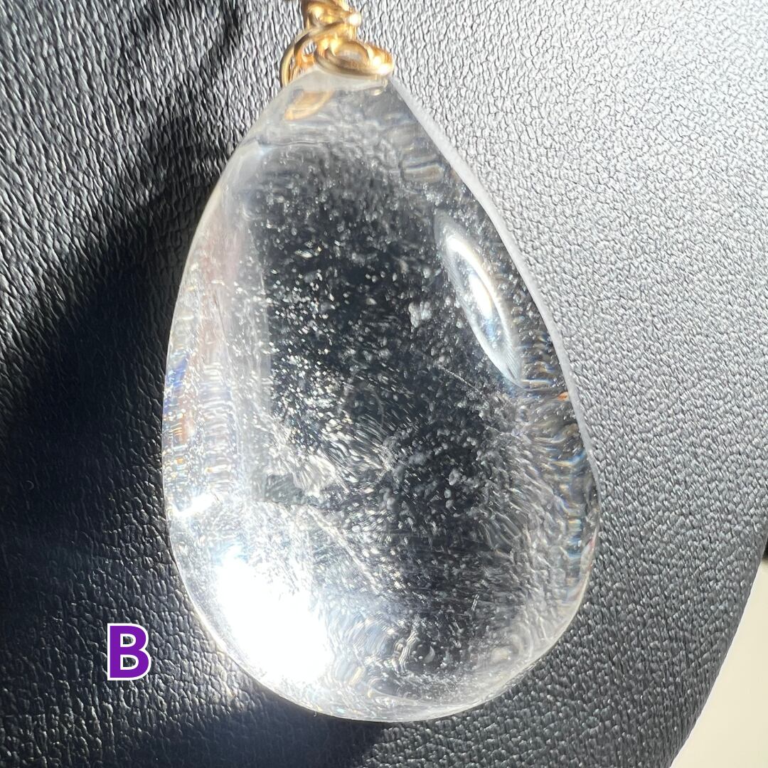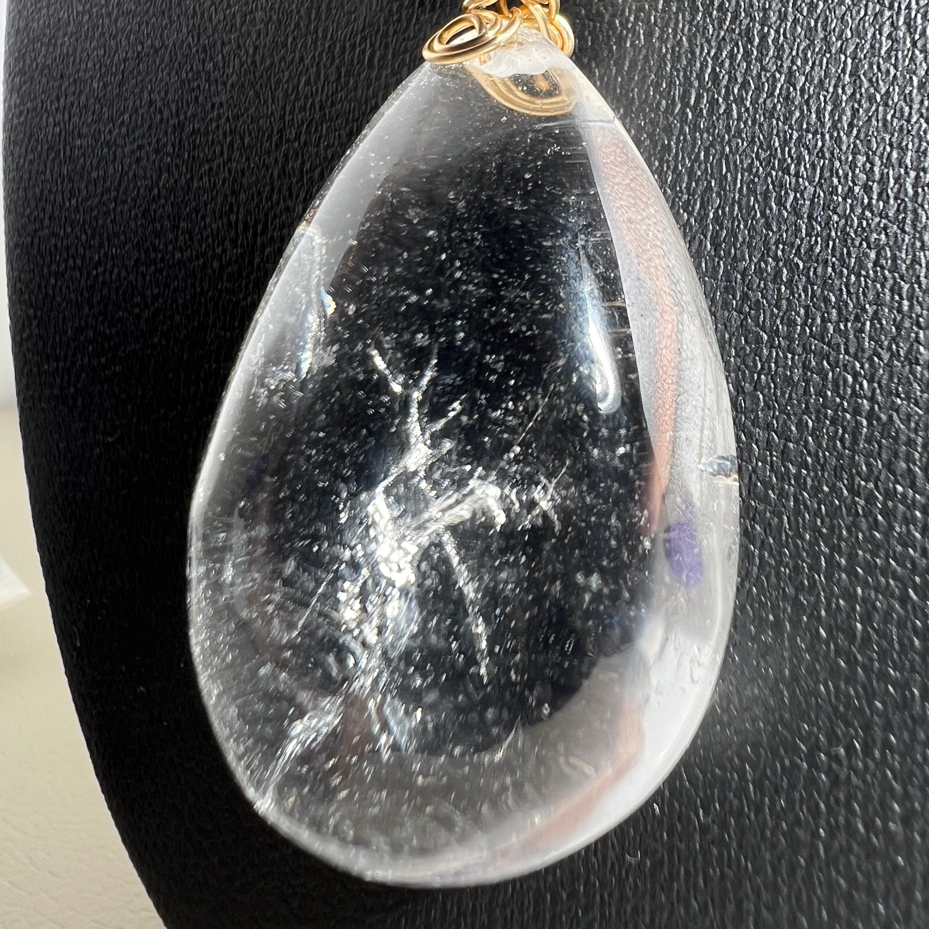 澄んだ透明感の中に、内包由来の表情がゆらめくクリアクォーツをワイヤーで包んだペンダントトップです。