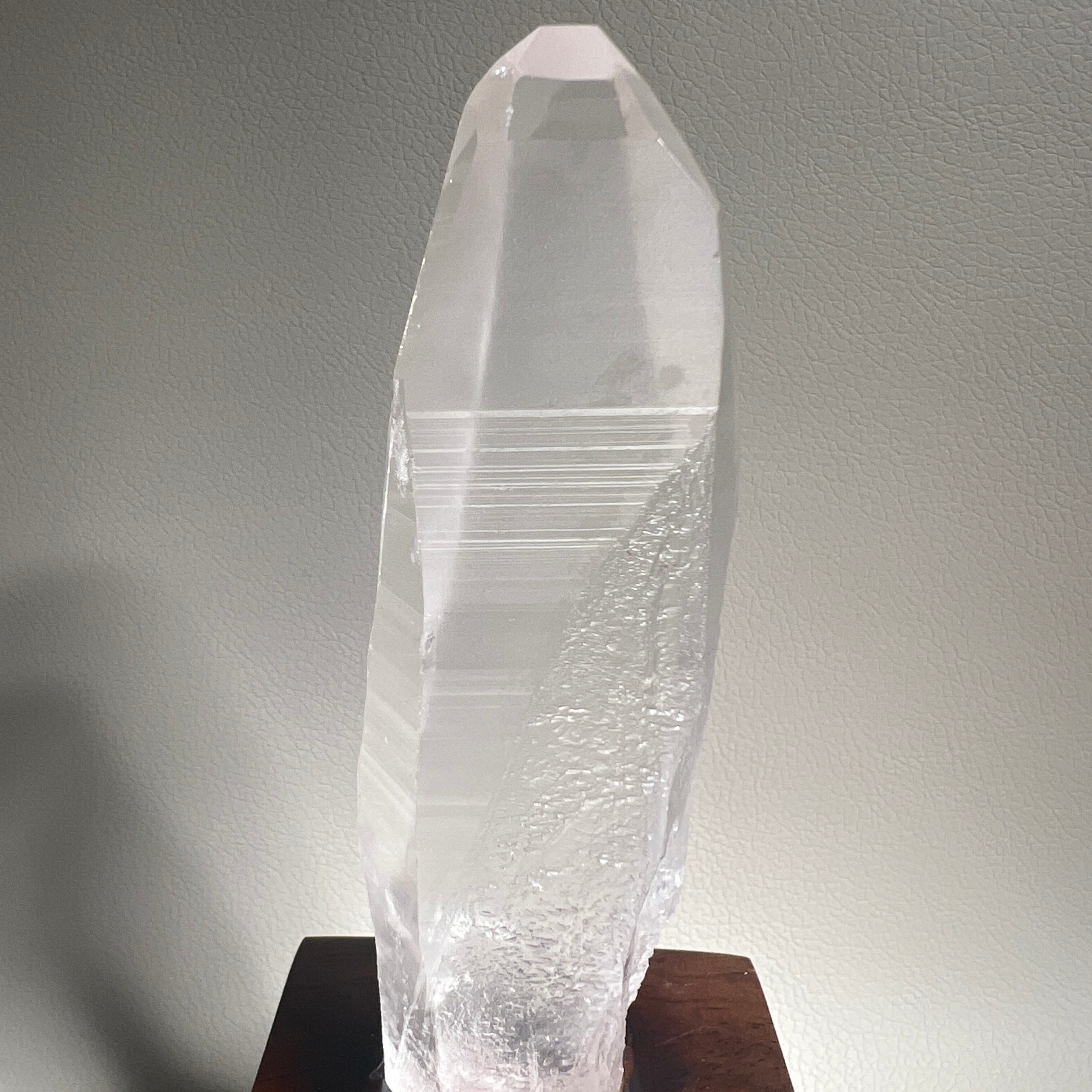 透明感のある水晶に、光の柱のような凛とした存在感が宿るレムリアンポイントです。
