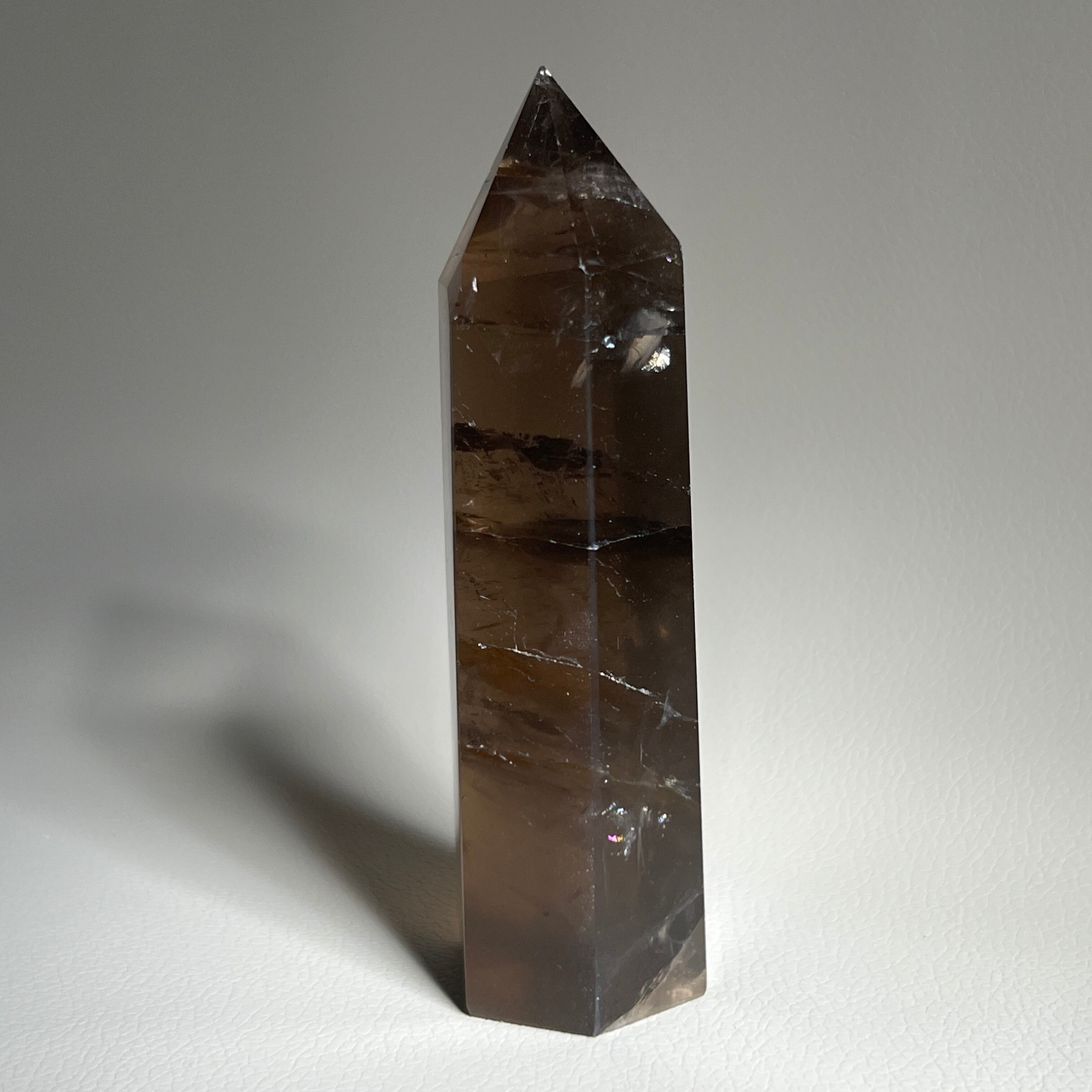 深い茶色の透明感が、空間に静かな重心をつくるスモーキークォーツのポイントです。