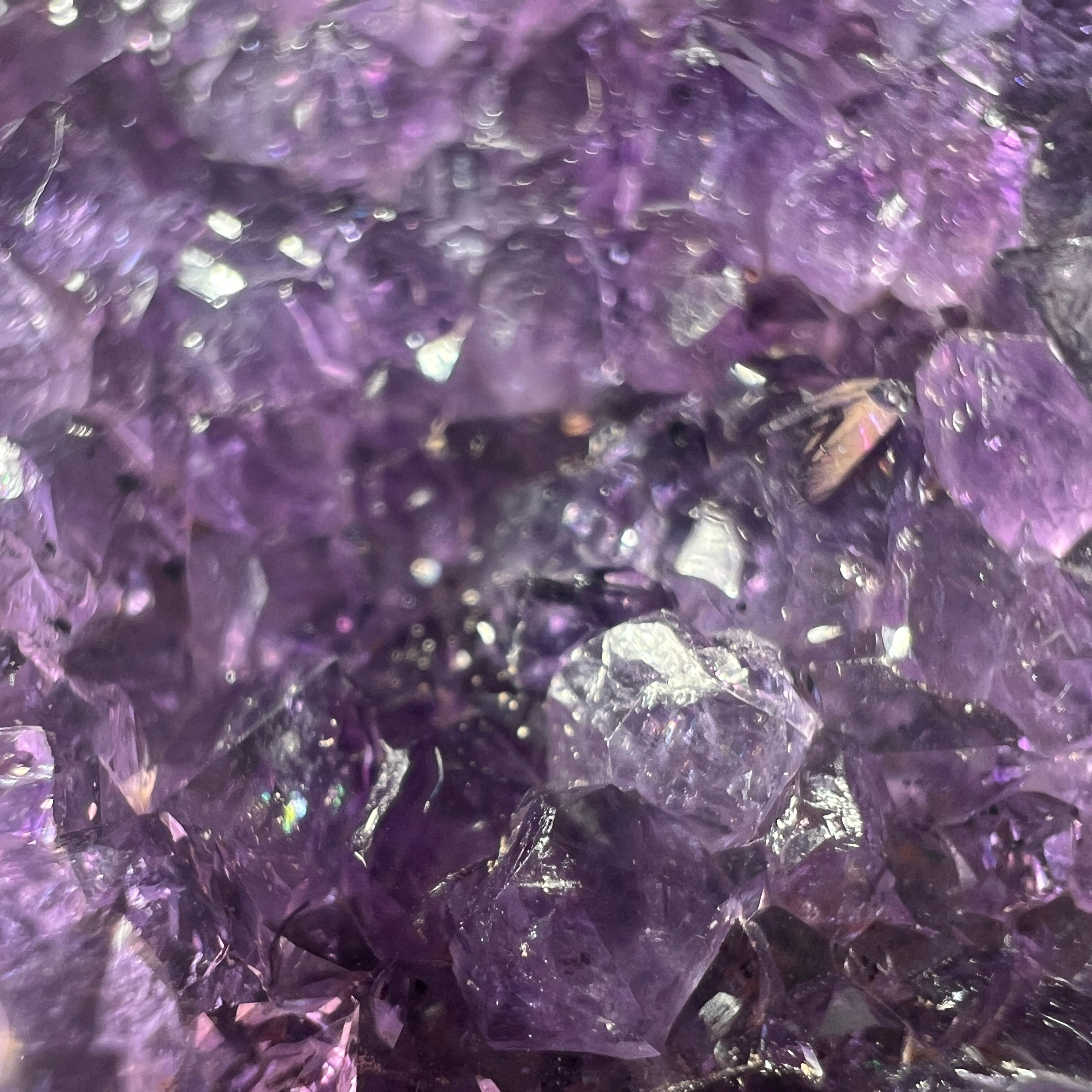 やわらかな紫の結晶が集まり、空間に静けさを招くアメジストクラスターです。