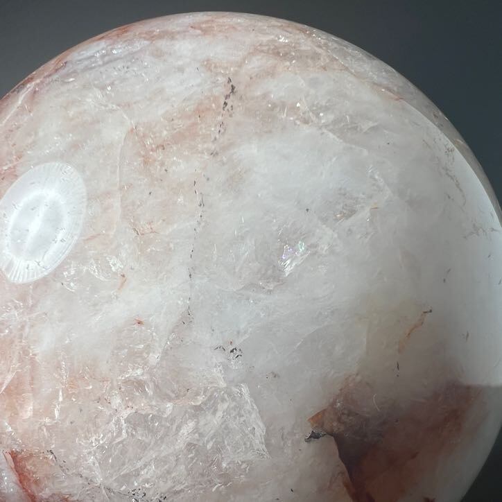 やわらかな白〜ベージュの中に、赤茶の流れが広がるライモナイトスフィアです。