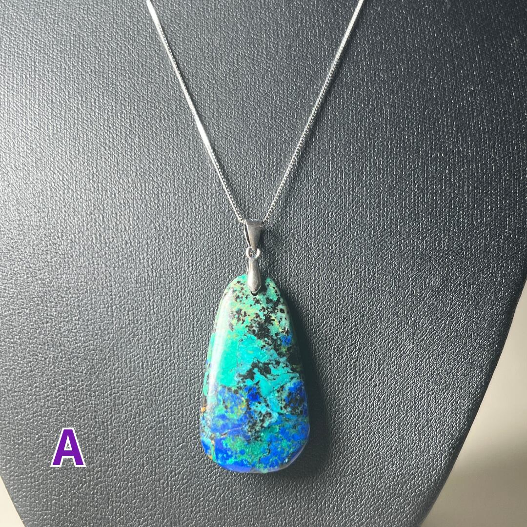 本音を言葉にして自分の道を選びたい人のためのアズライト×クリソコラ ネックレス チェーン付き No.262-0