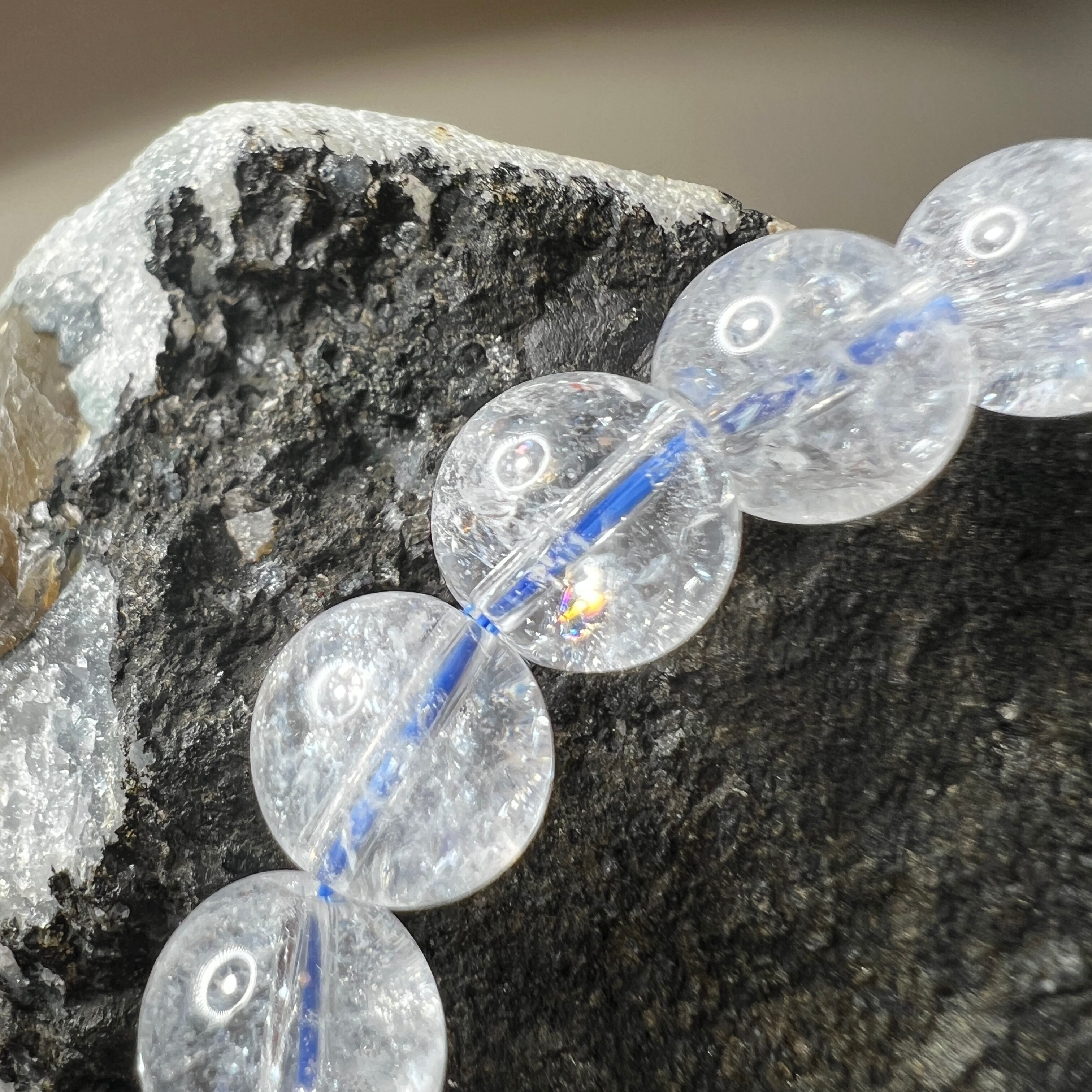澄んだ透明感の中に、光の角度で虹色の表情が浮かぶアイリスレムリアンクォーツのブレスレットです。