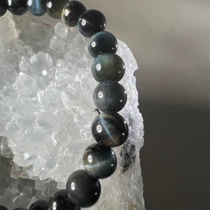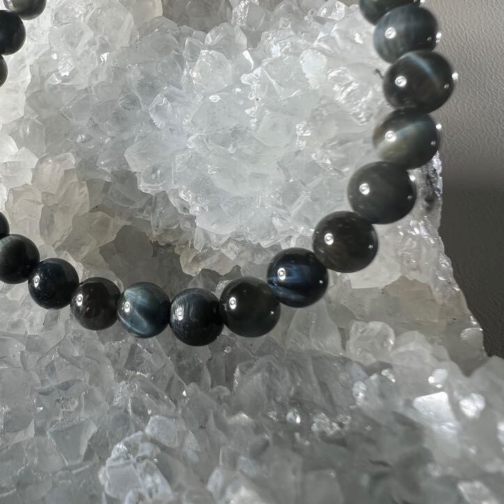 深いブルーから墨色に近いトーンまで、珠ごとに表情が変わるブルータイガーアイです。