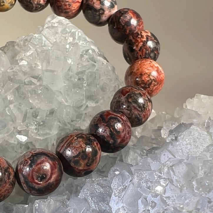 レオパードスキンジャスパーは、褐色や赤み、墨色が混ざり合い、模様の景色が広がるストーンです。