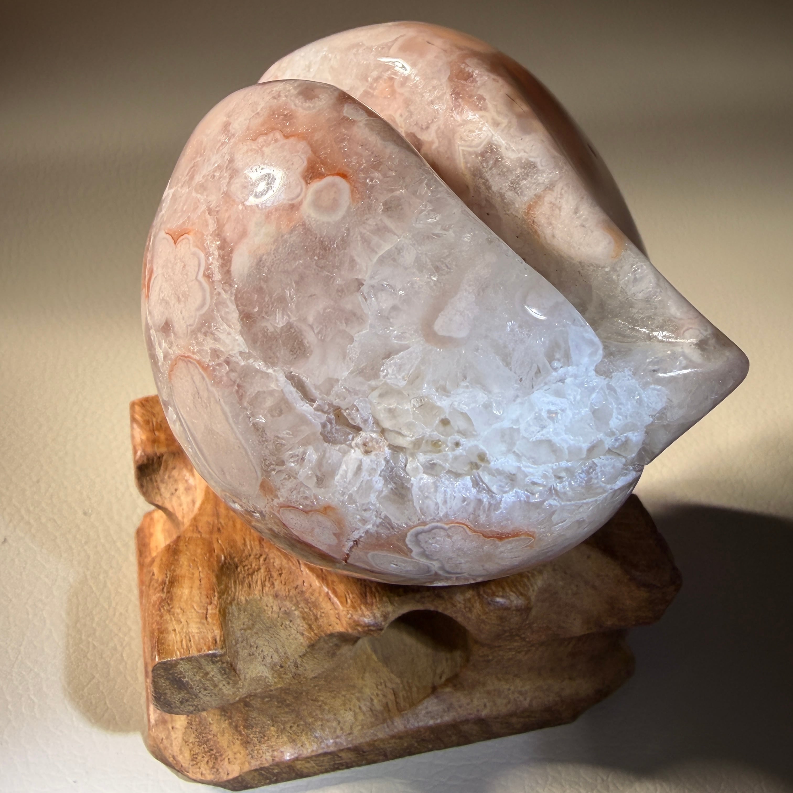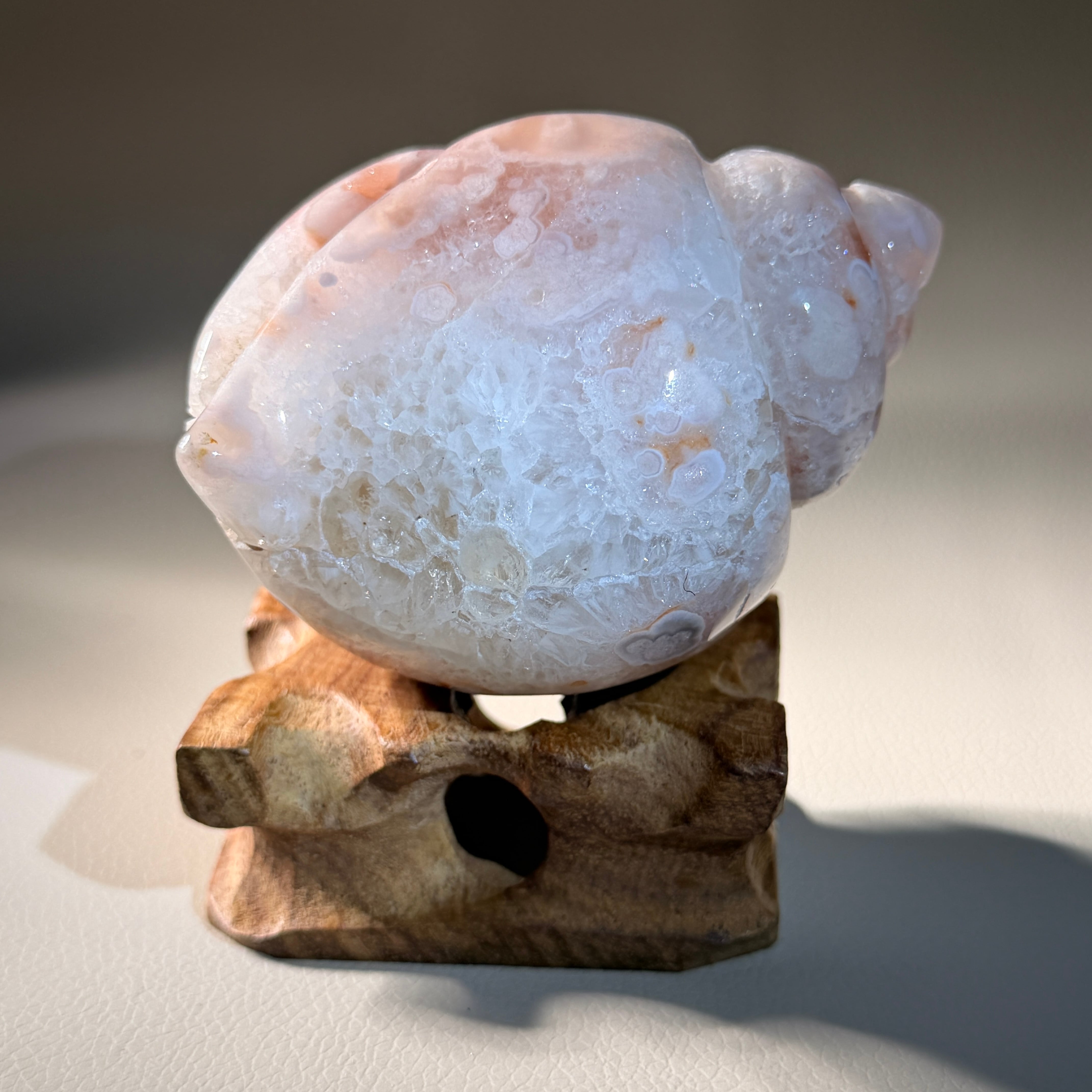 自分を甘やかす癒しと恋のときめきを育てるさくらメノウ貝殻モチーフ木製台座付き 263-6