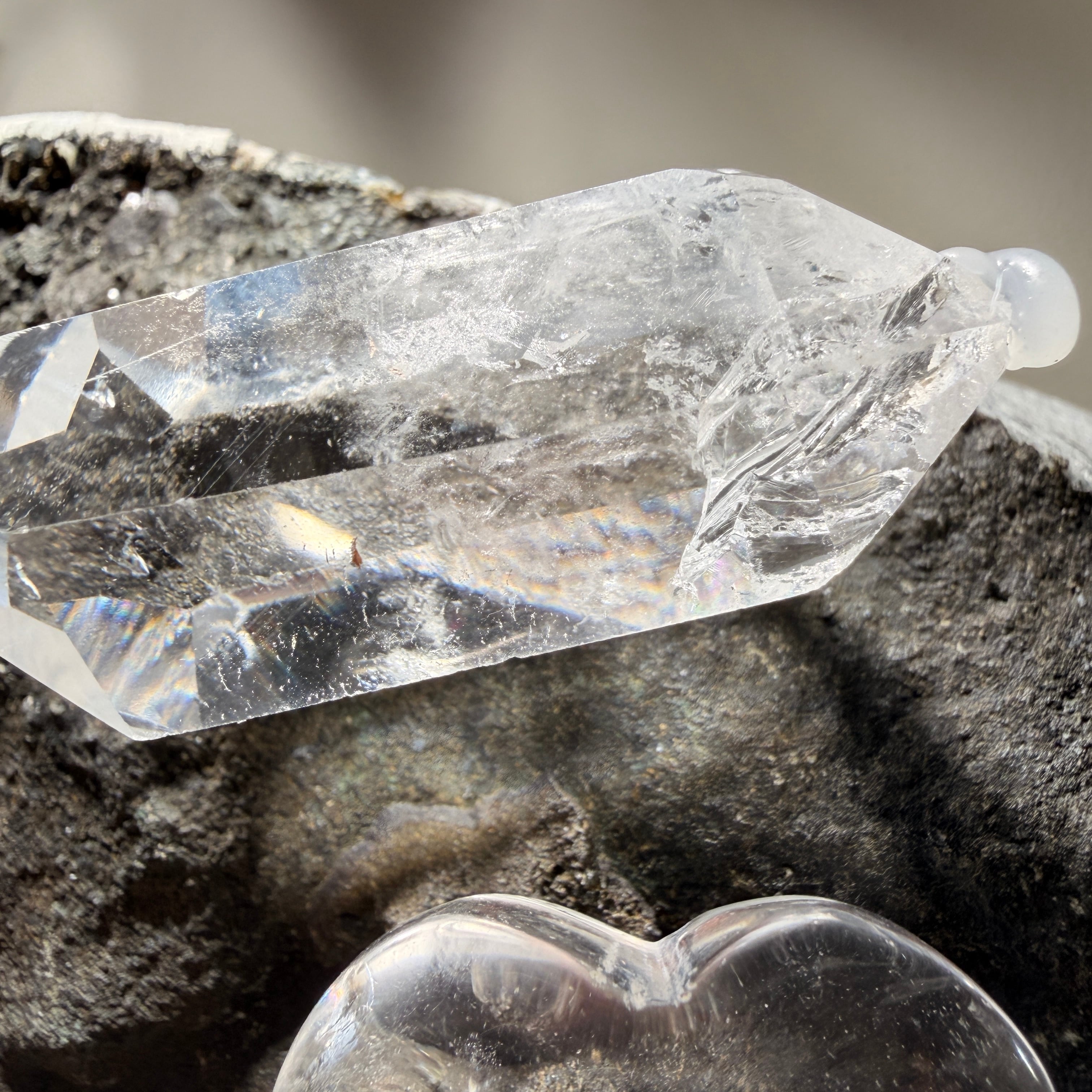 愛の循環を広げて願いを現実へ導く虹入り水晶ハートとダブルポイント水晶セット 263-9