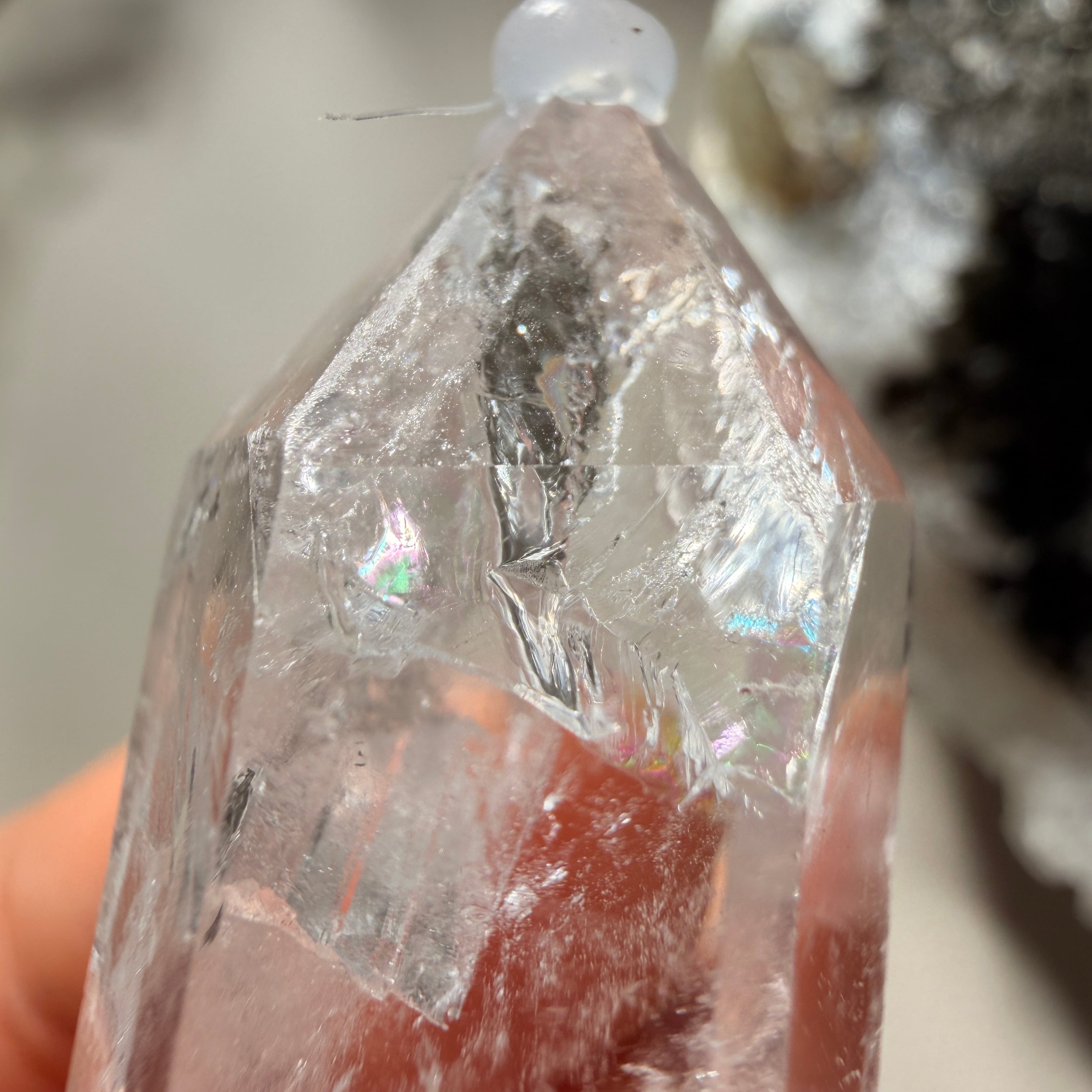 光の角度で内包由来の虹が現れ、澄んだ輝きの中に奥行きのある表情が広がります。