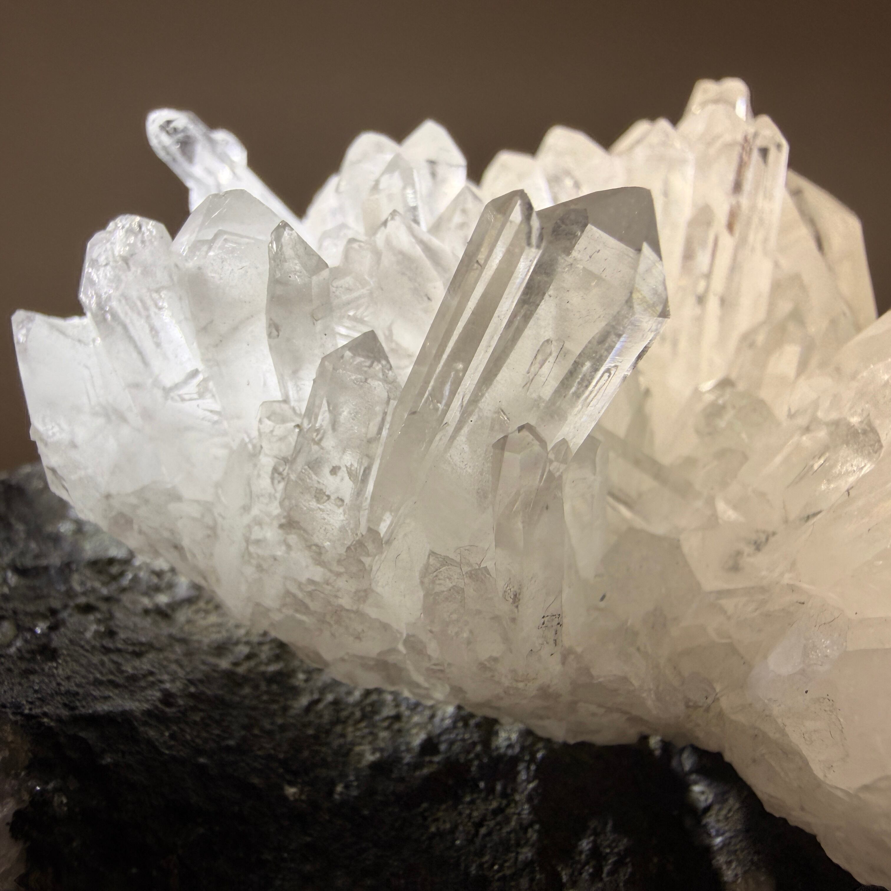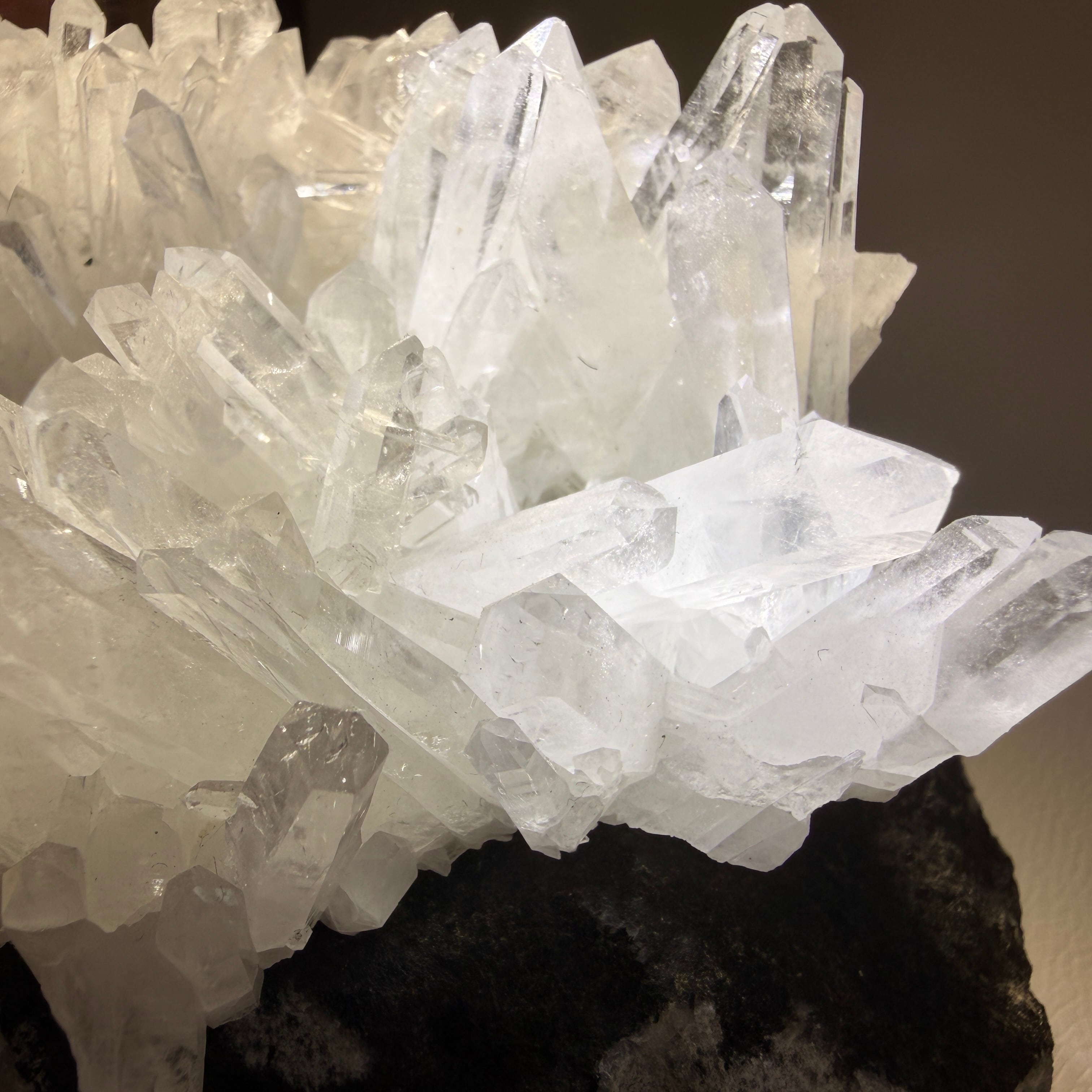 透明感のあるポイントが重なり合い、結晶の層がつくる立体感が印象的なレムリアンクオーツクラスターです。