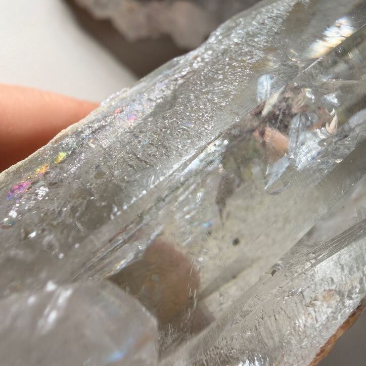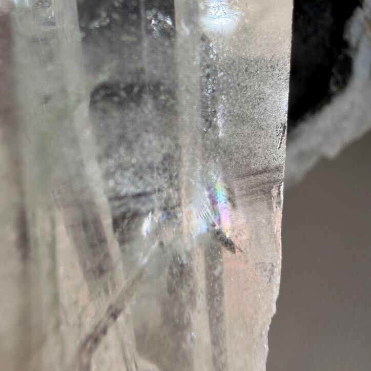 こちらは結晶内部に虹が見られ、光の角度によって表情が変わる神秘的な一点です。
