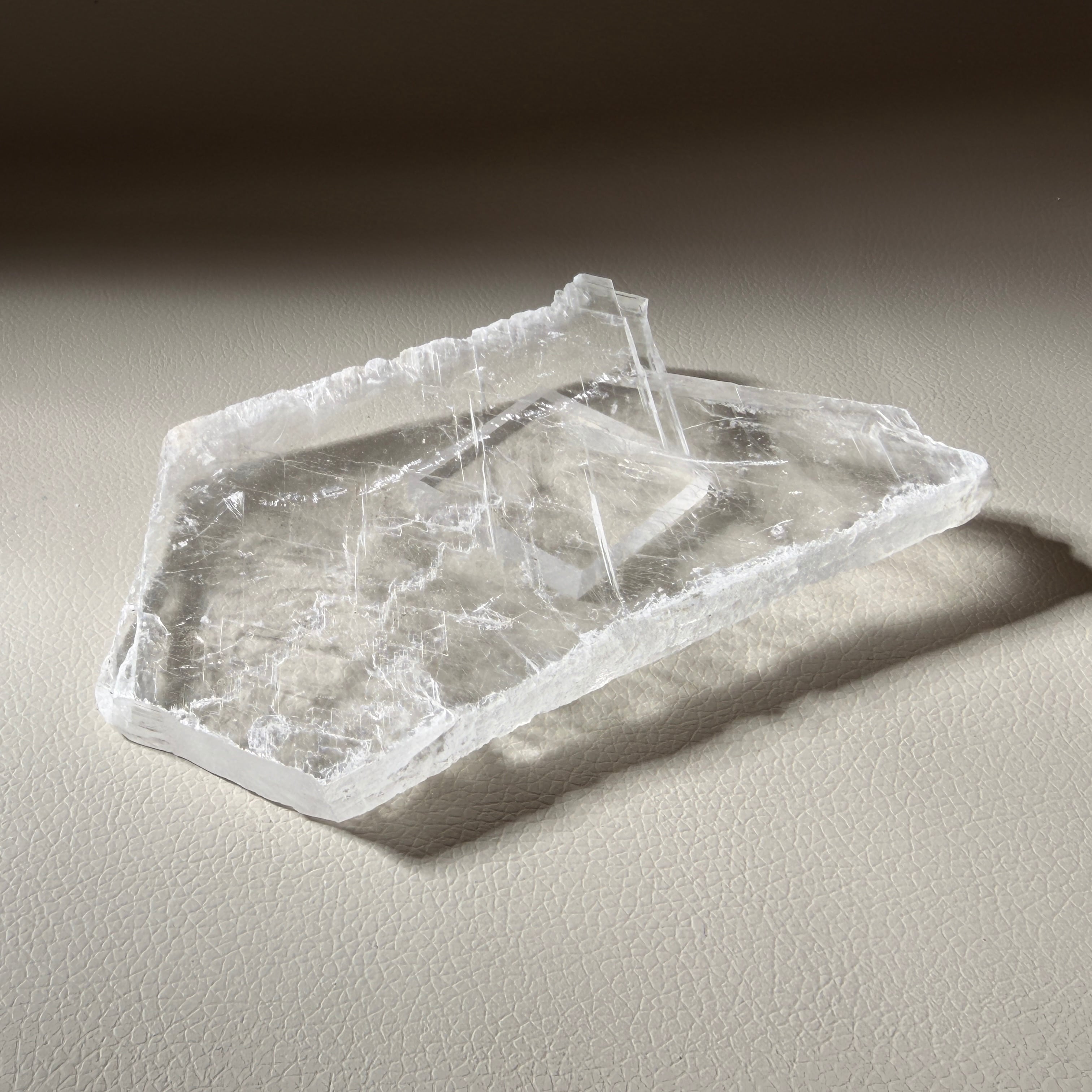 プレート状に整えられた姿は透明感のバランスが美しく、光を受けるたびに繊細な筋模様が浮かび上がる一点です。