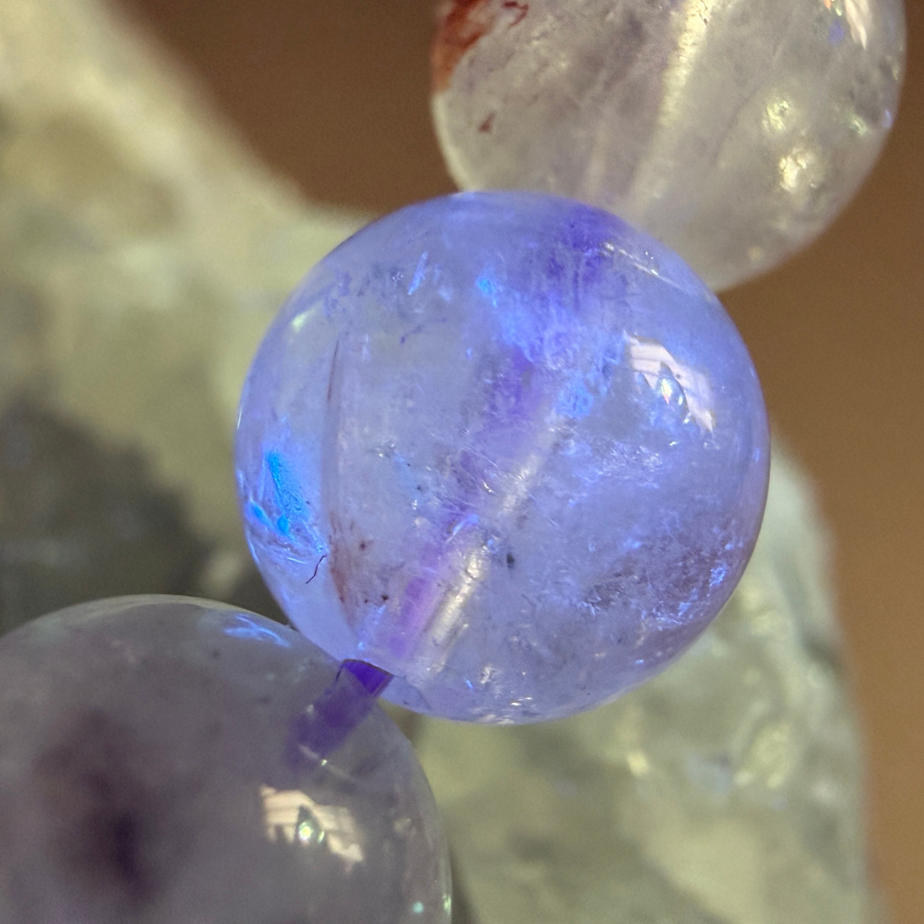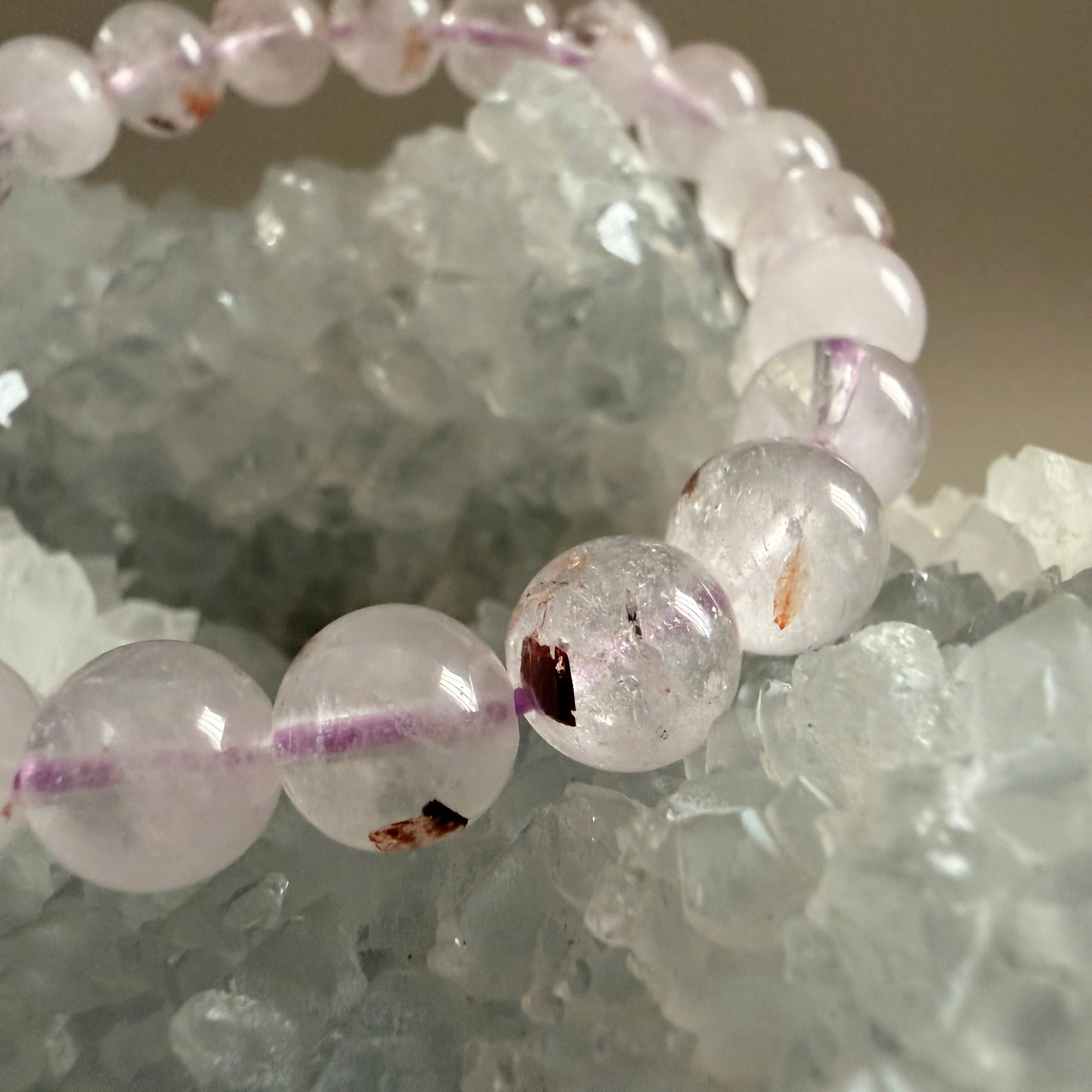 こちらは一粒ごとに異なる内包由来の表情が見られ、淡い発色と神秘的な奥行きを楽しめるブレスレットです。