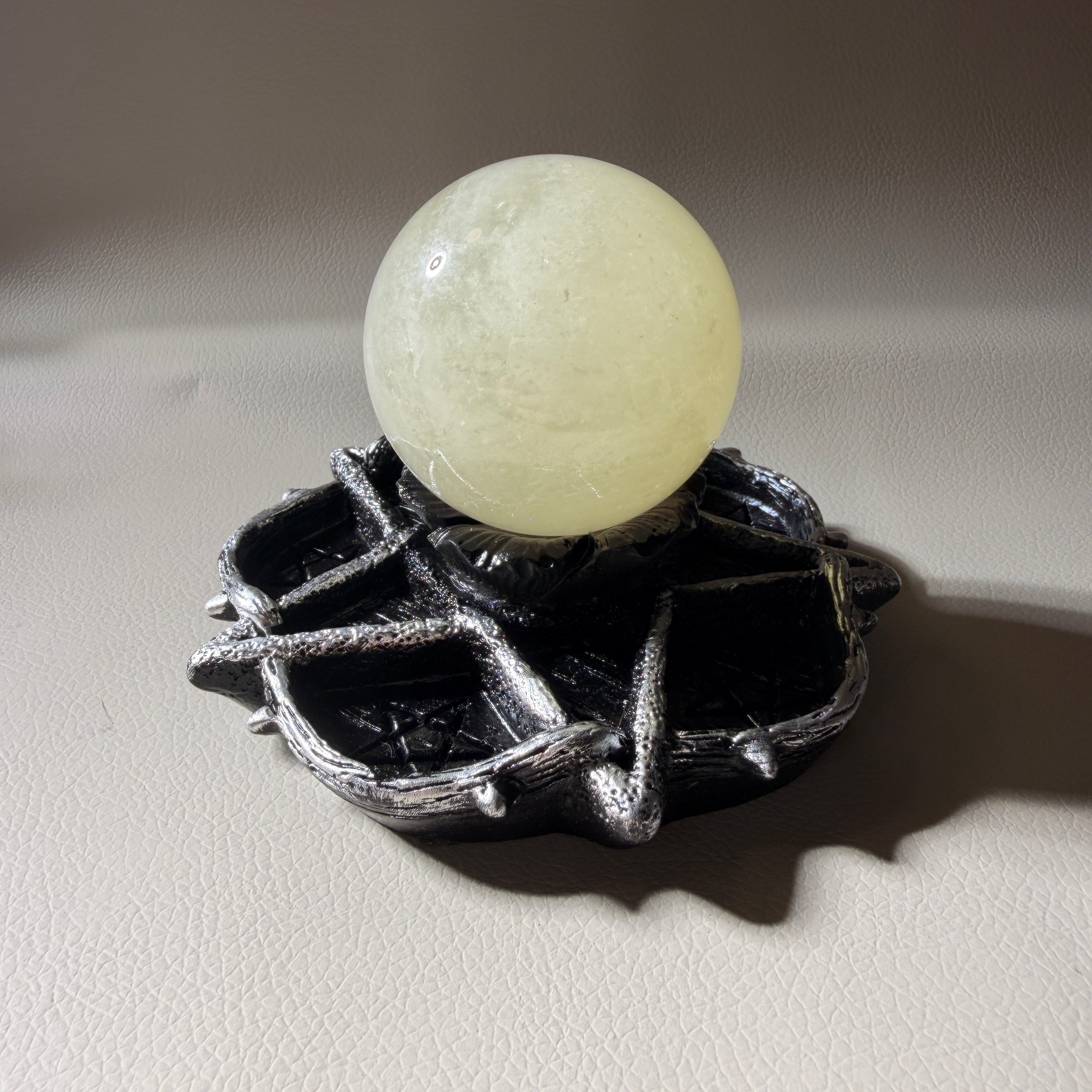 深みのある色合いと立体感のある意匠が、スフィアやお気に入りの石の存在感を引き立て、空間に静かな緊張感と特別感を添えてくれます。