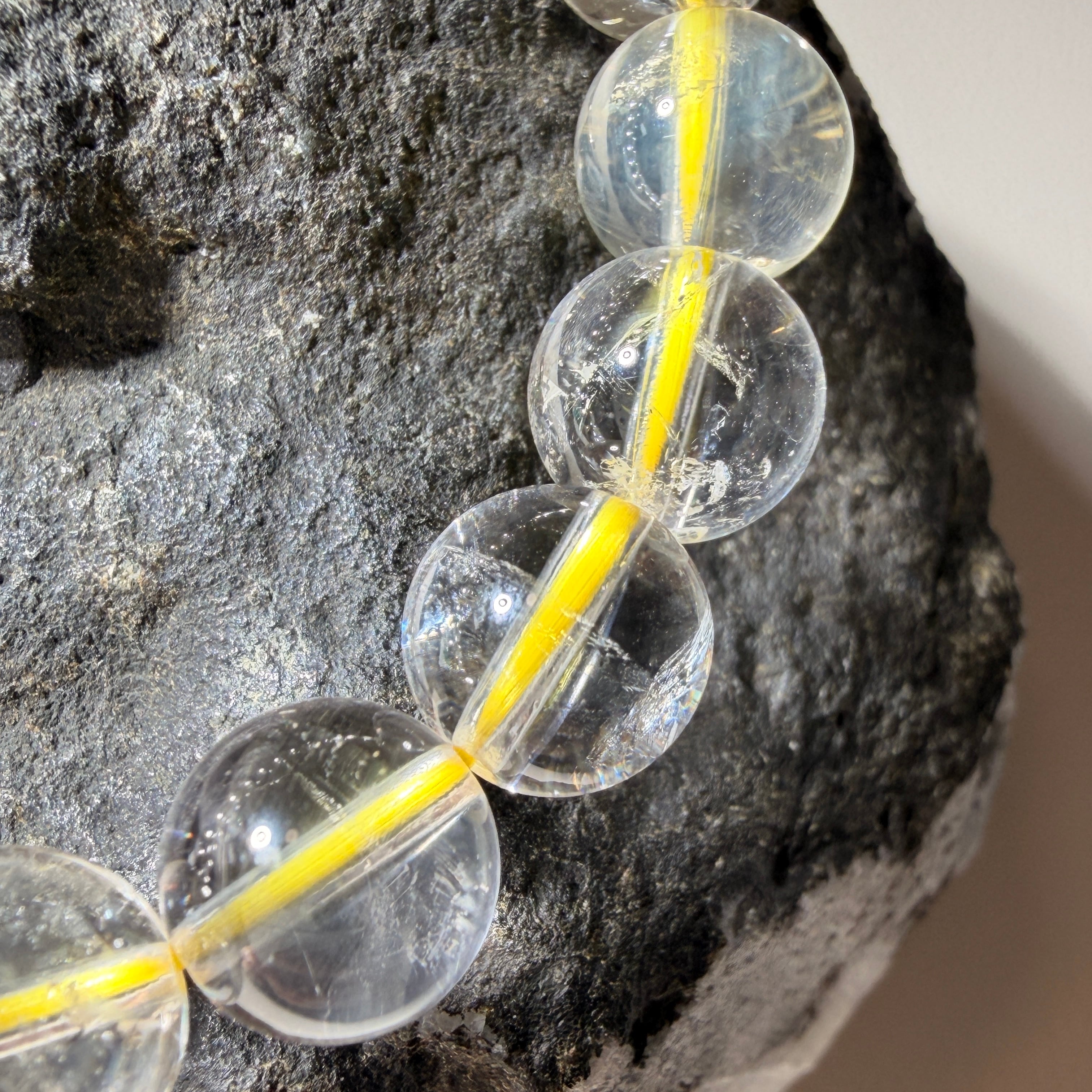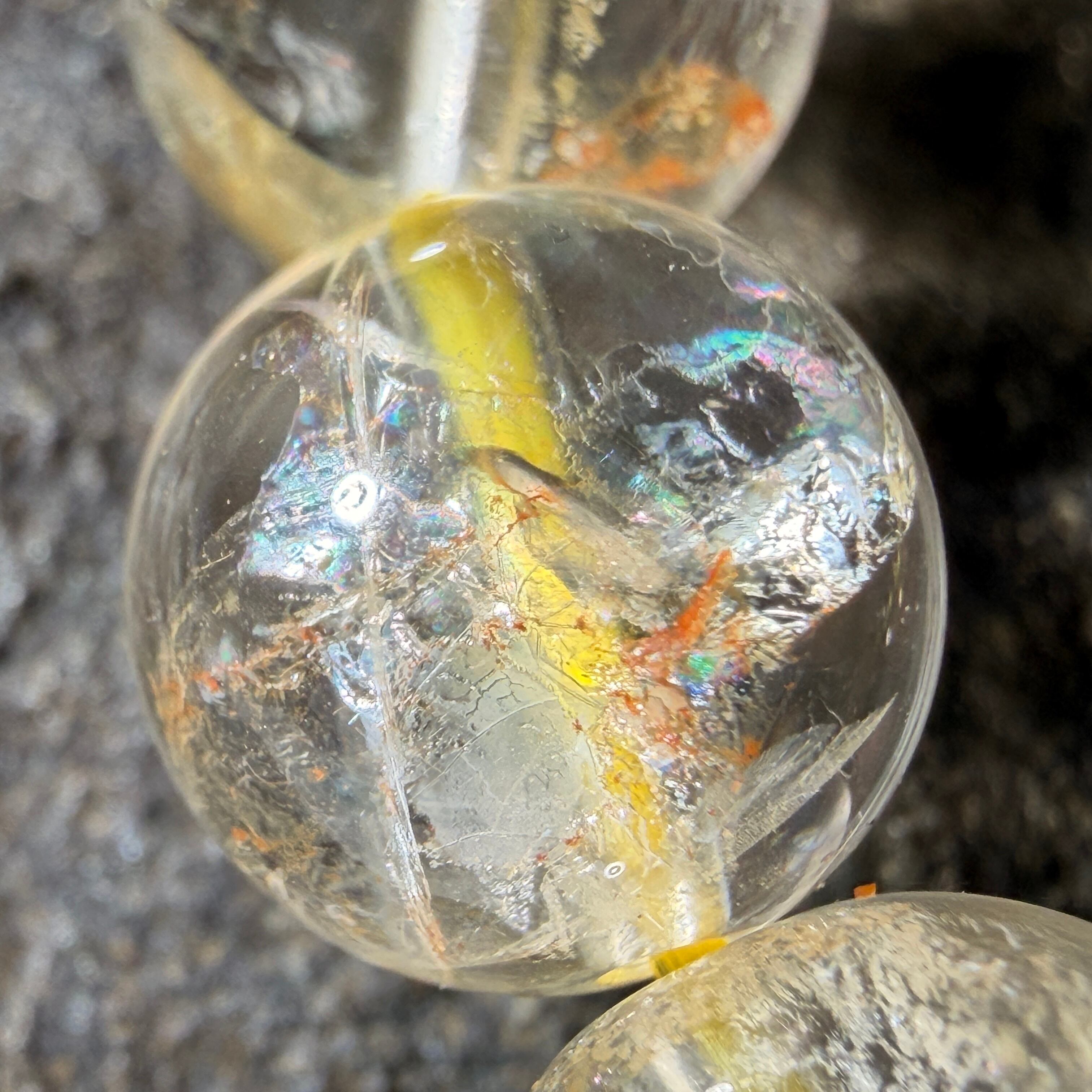 澄んだ粒の中に見える内包由来の表情や、光の角度で現れる虹が、それぞれの玉に異なる魅力を添えています。