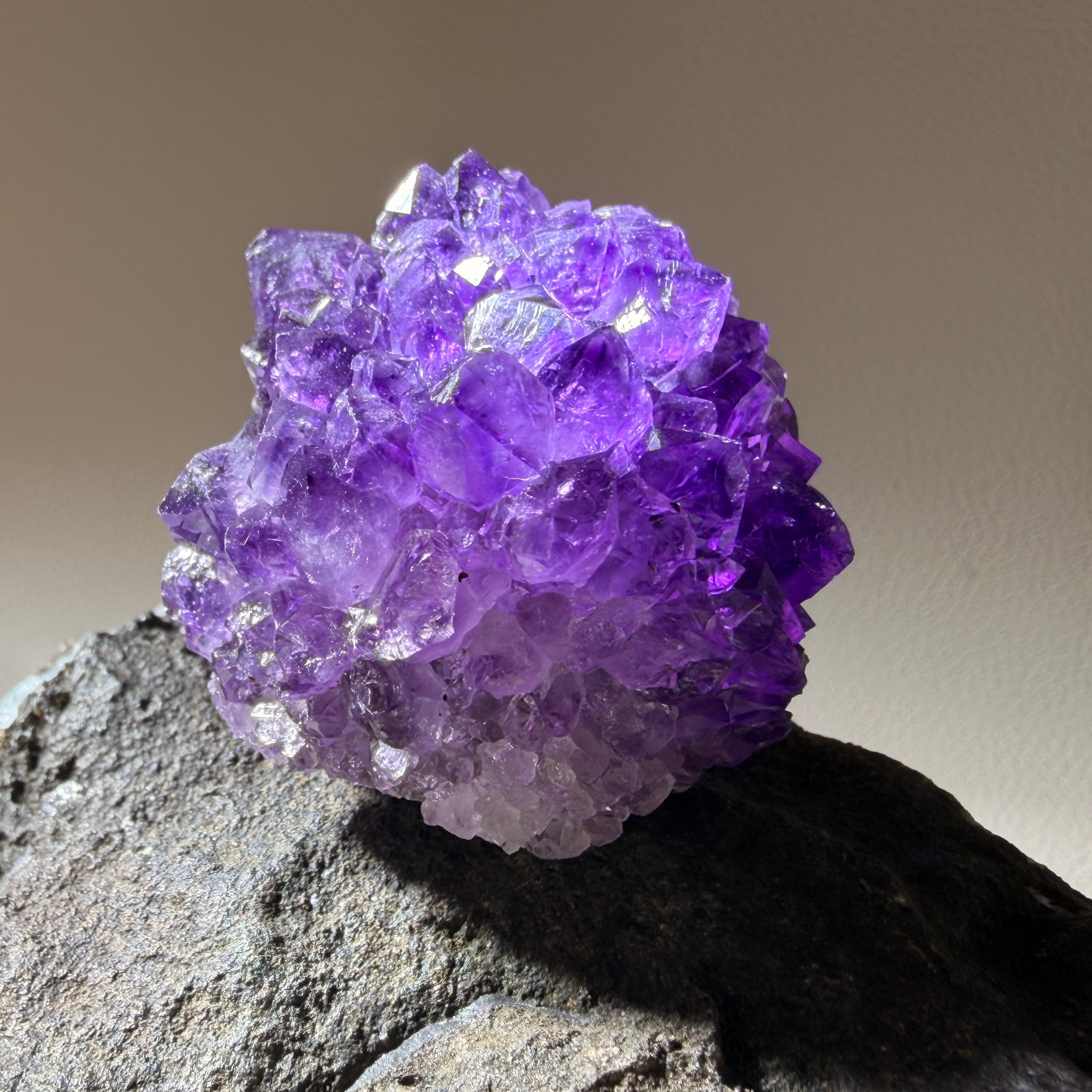 【濃密な紫の輝きが、静かな浄化と癒しを広げる結晶】