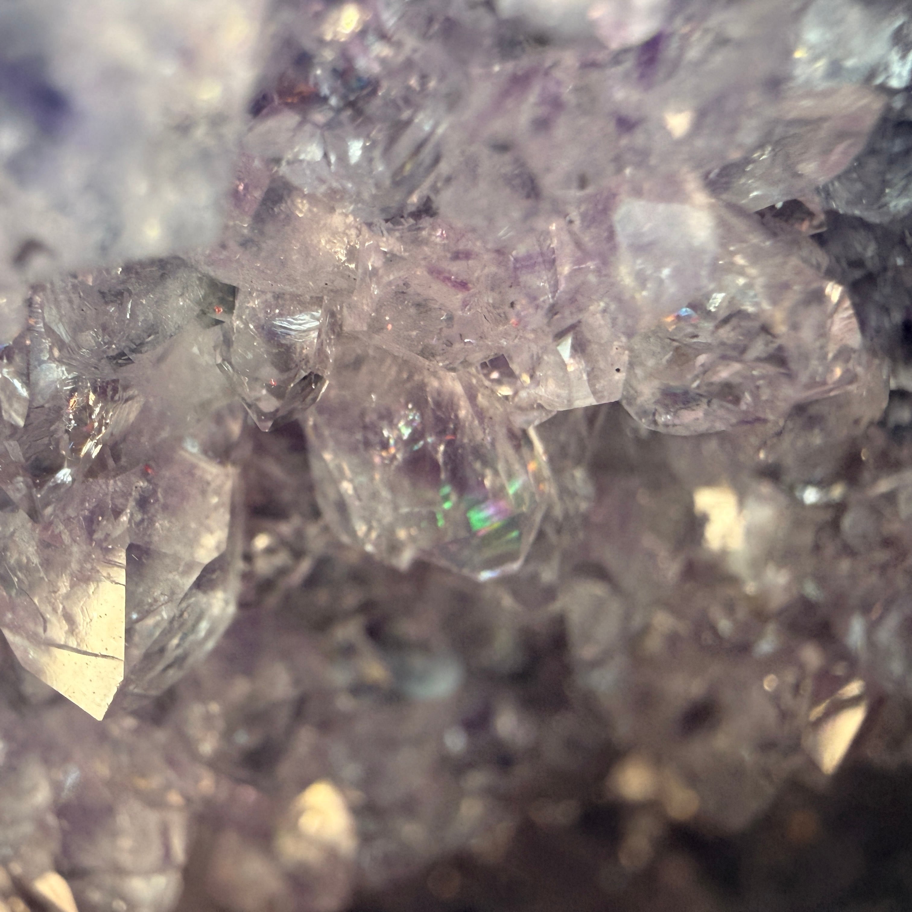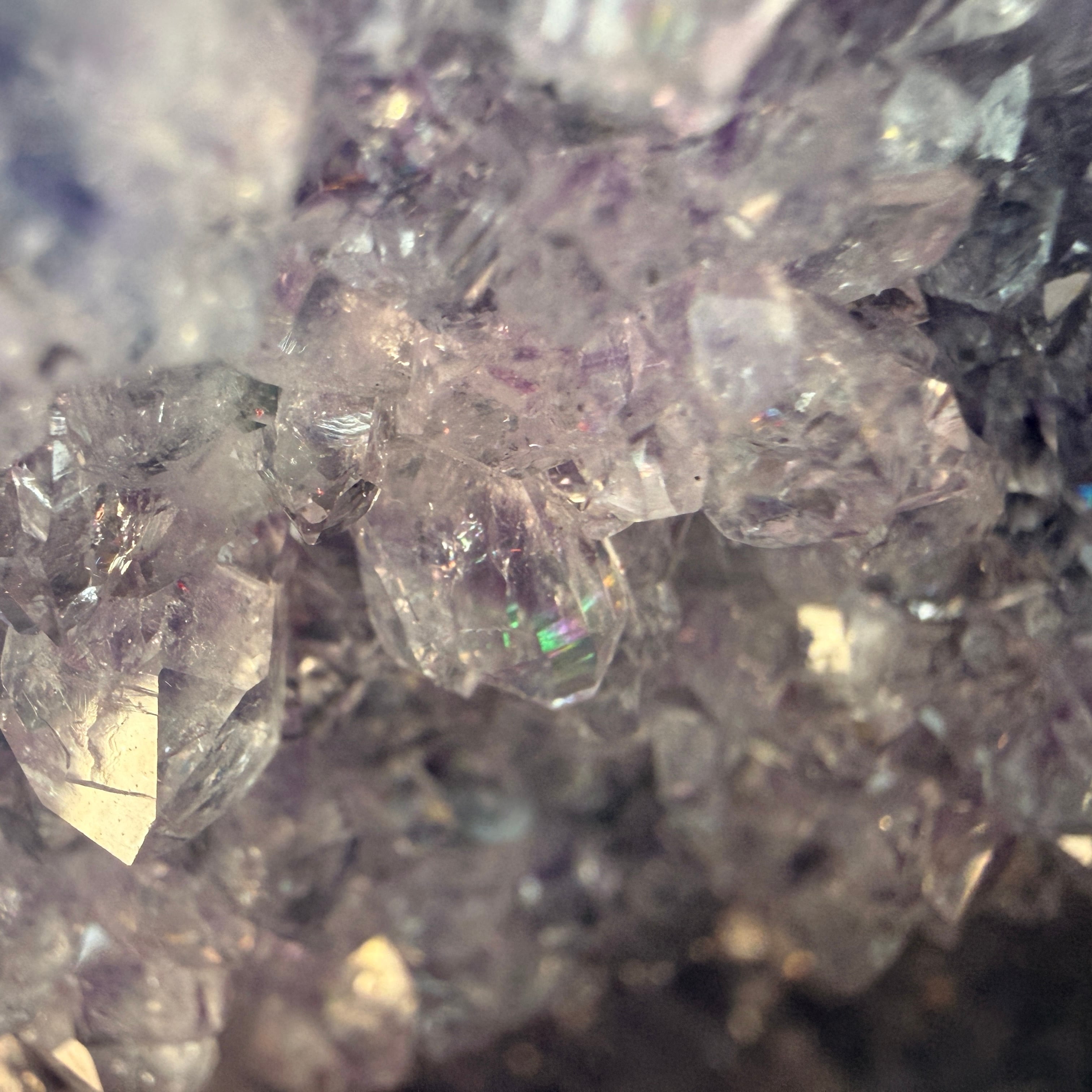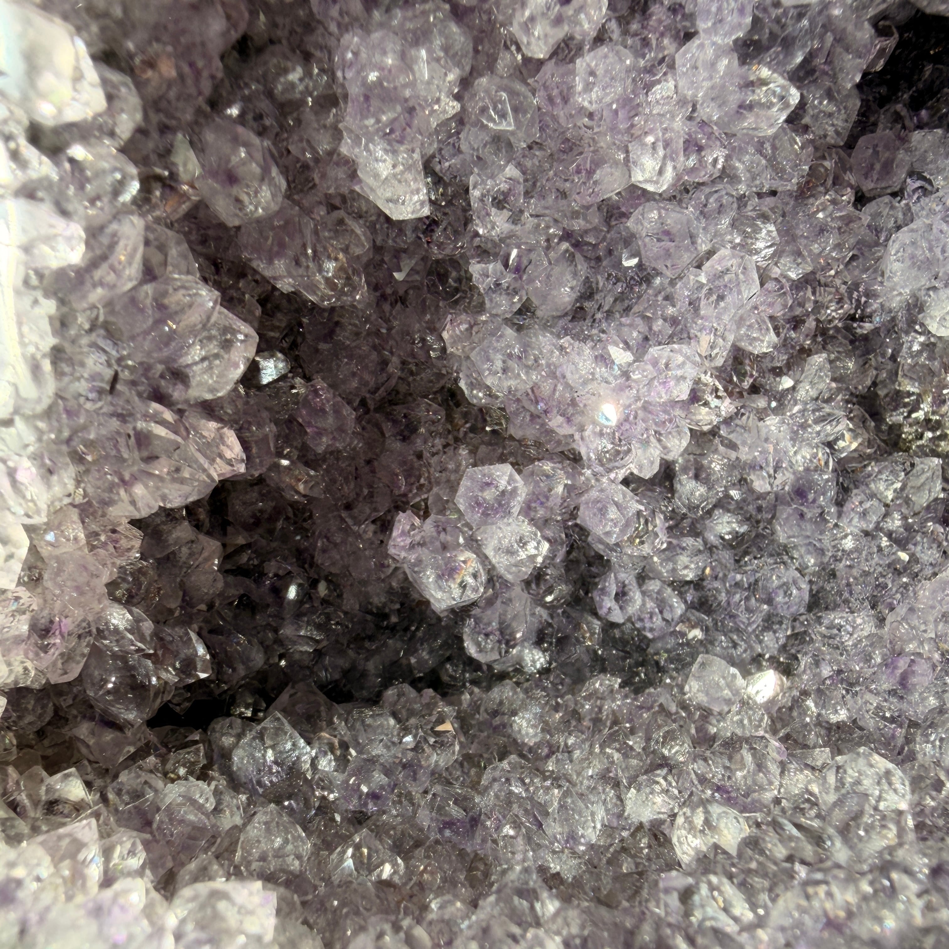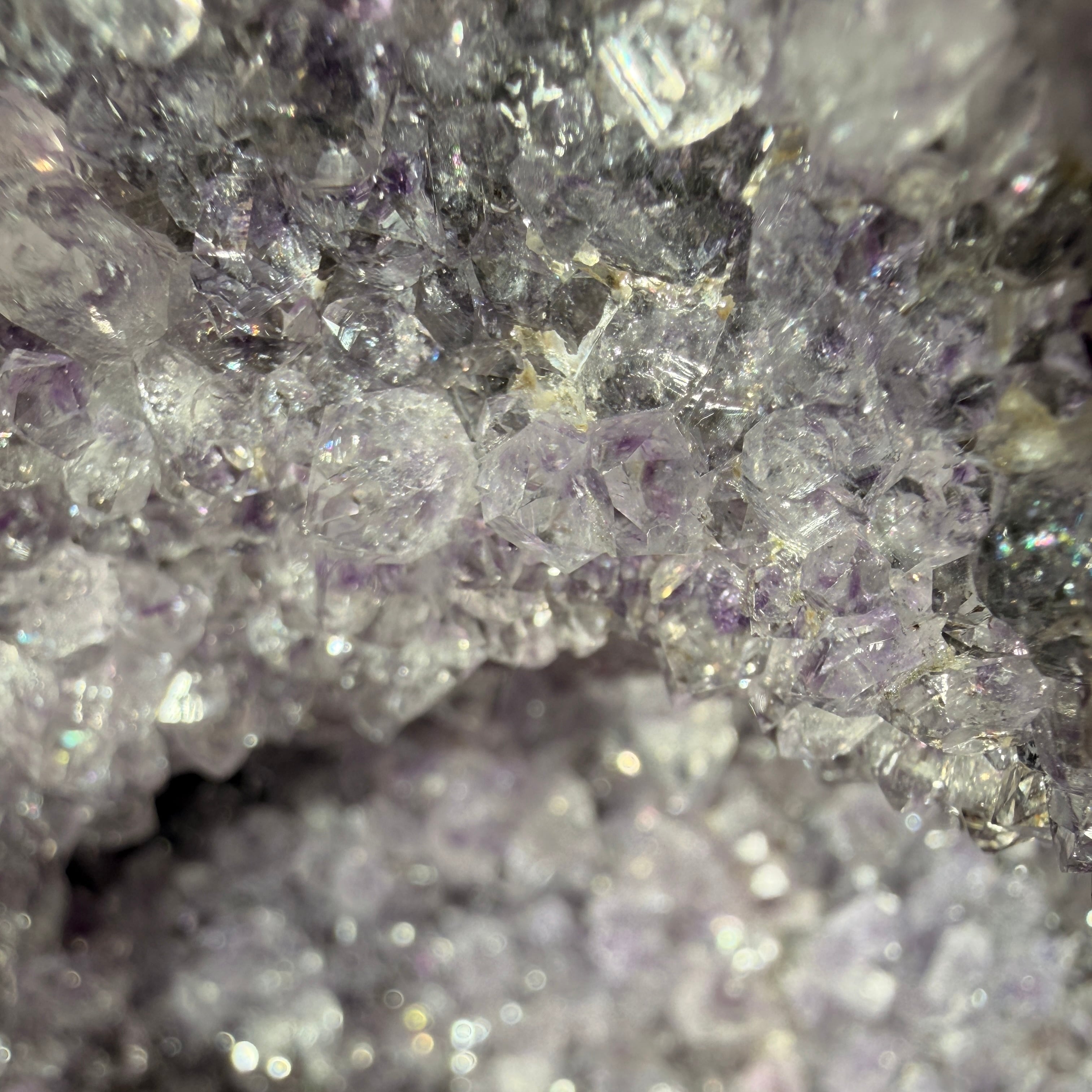 内側に淡い紫の結晶が広がる、神秘的なアメジストドームです。