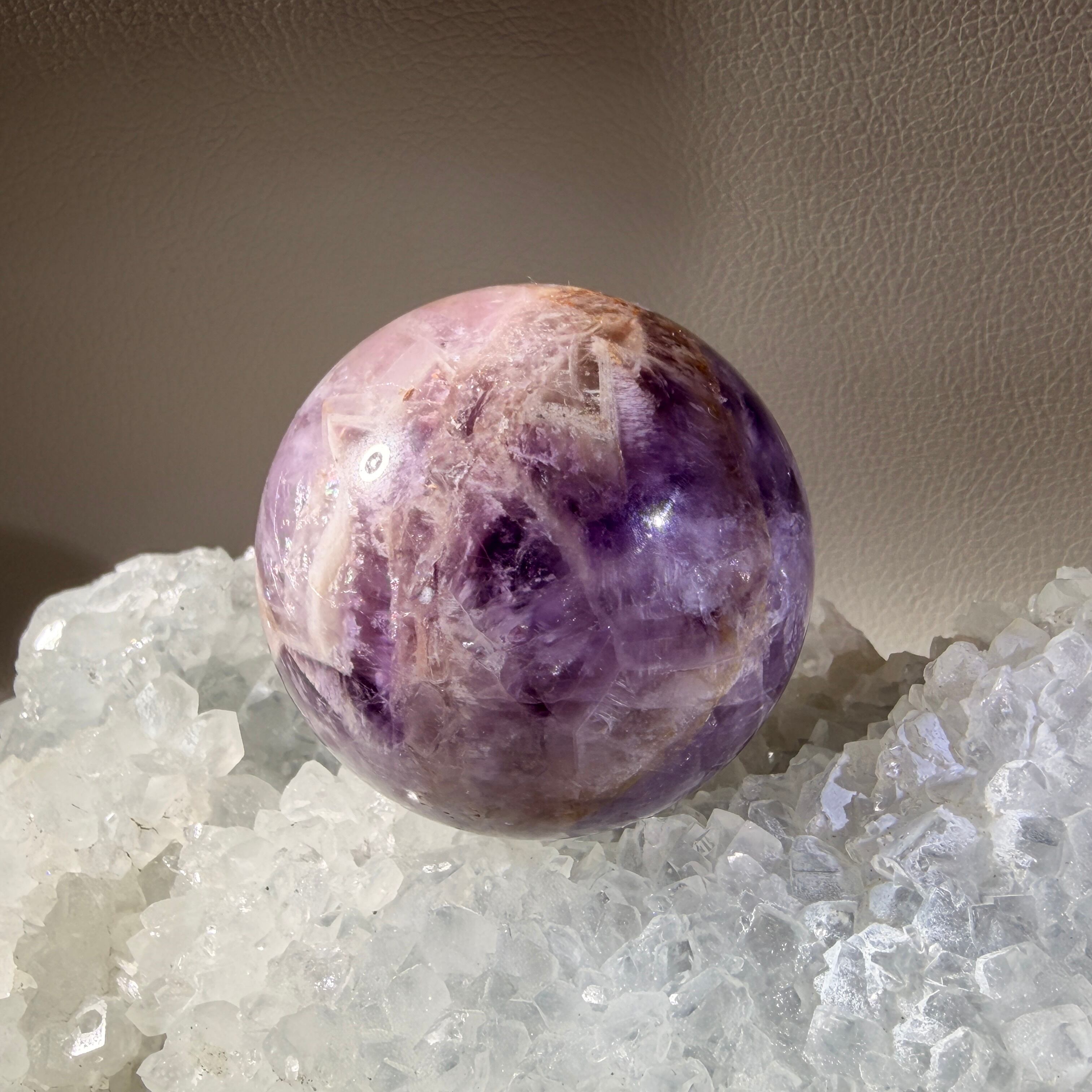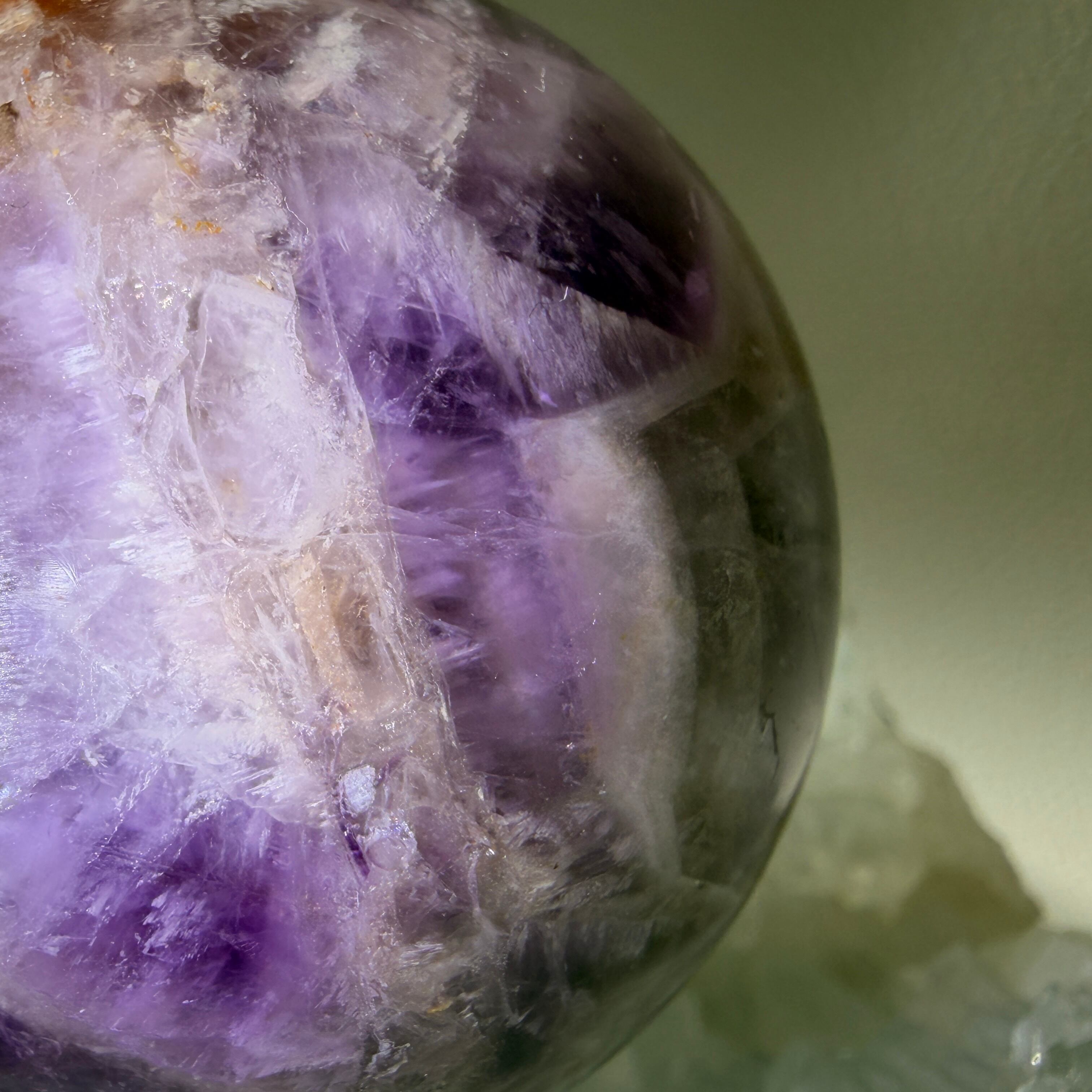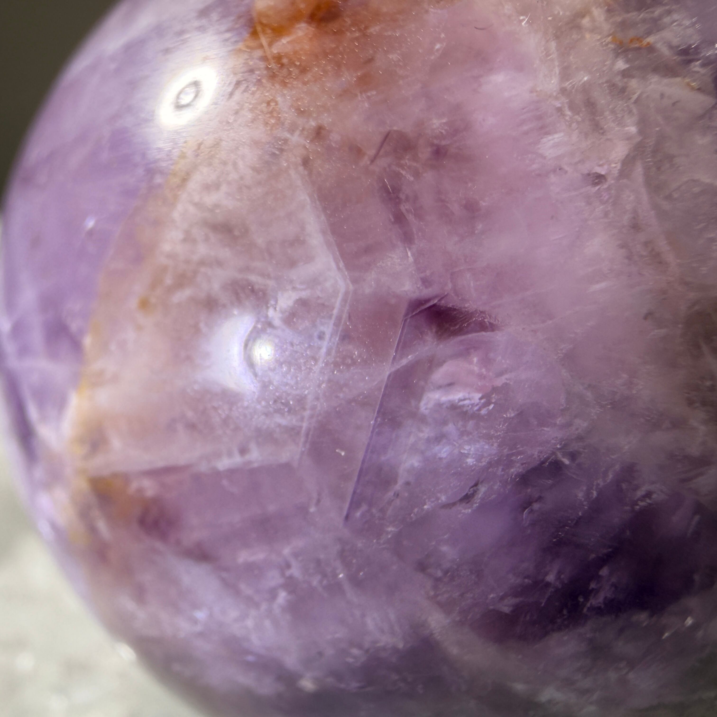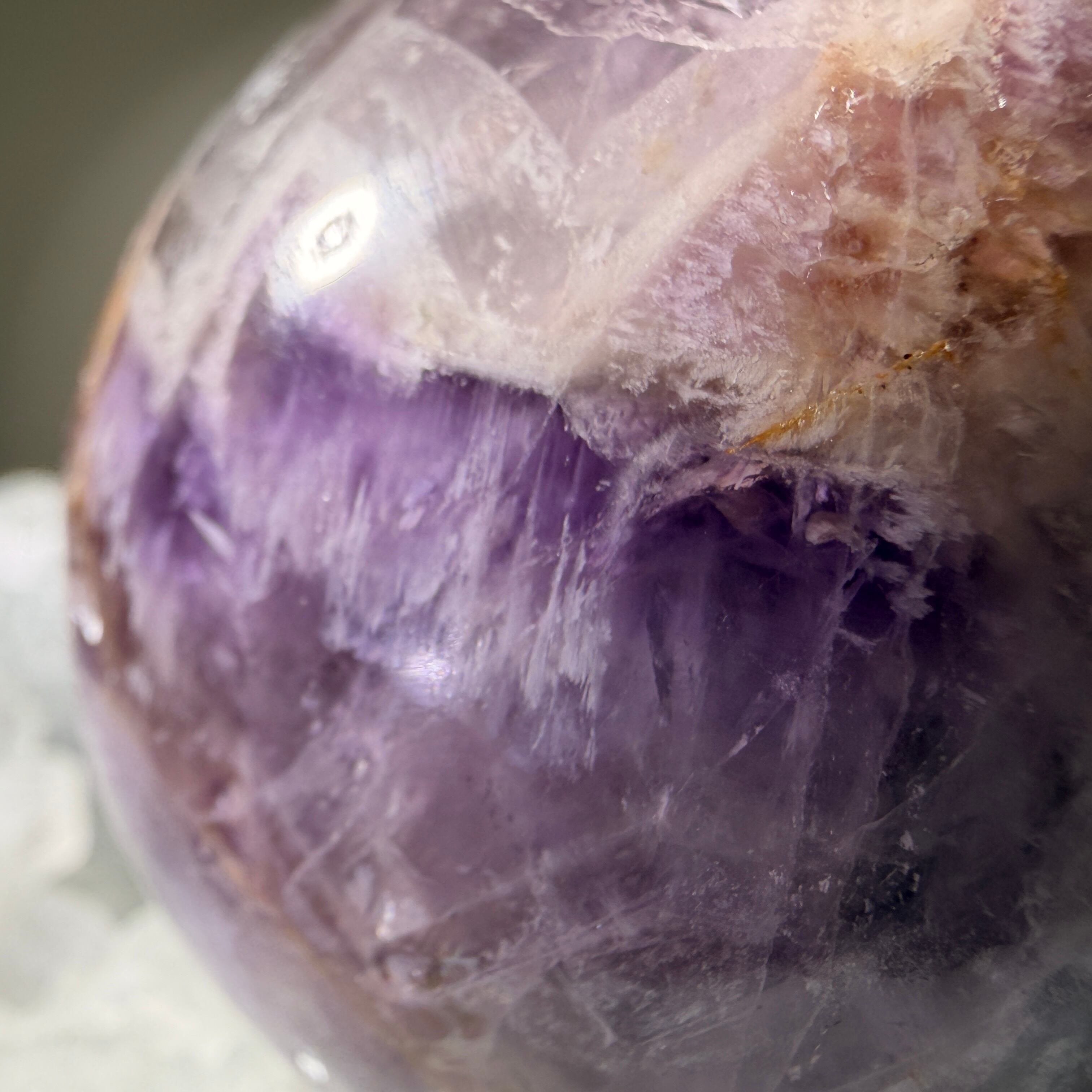 やわらかな紫の濃淡が広がる、アメジストのスフィアです。