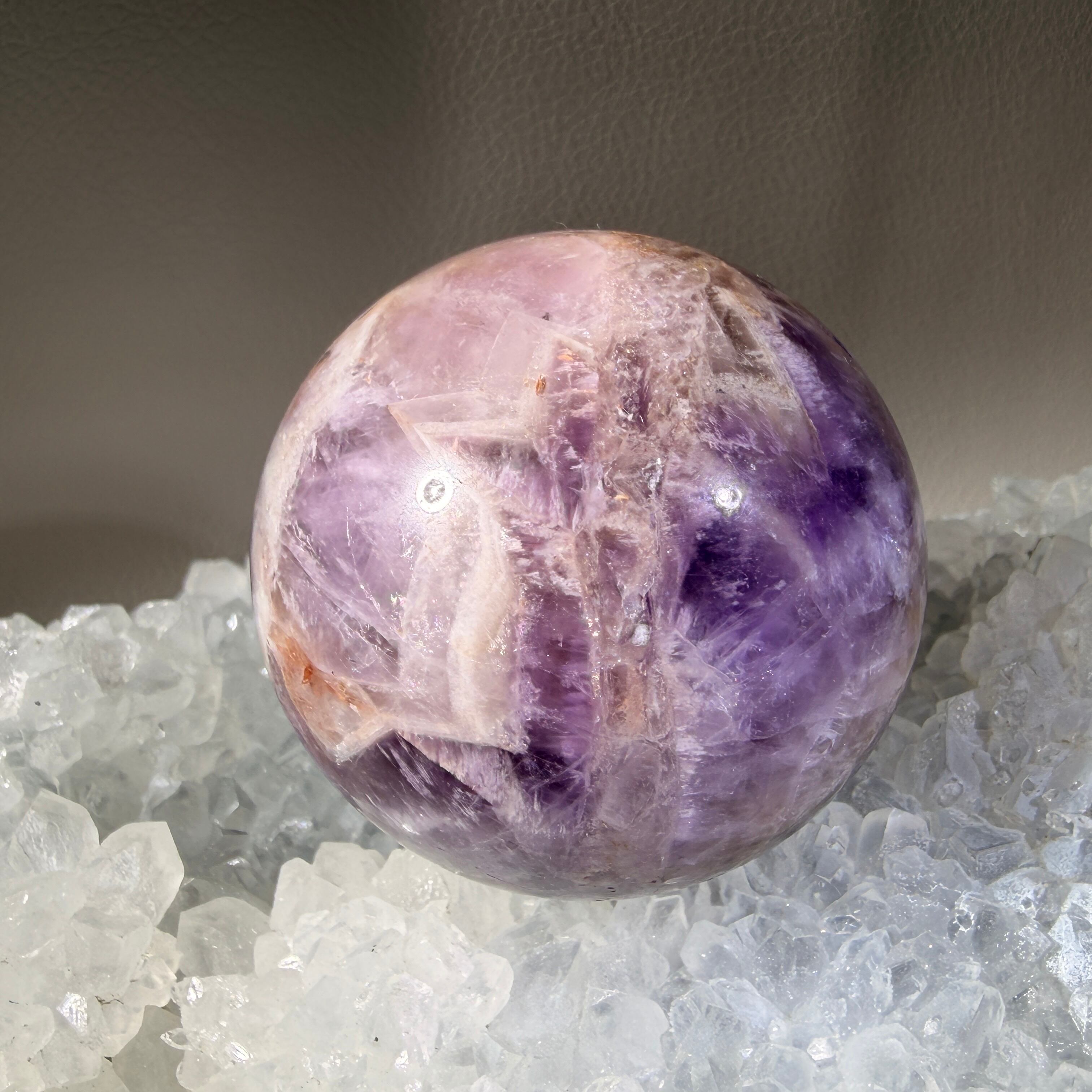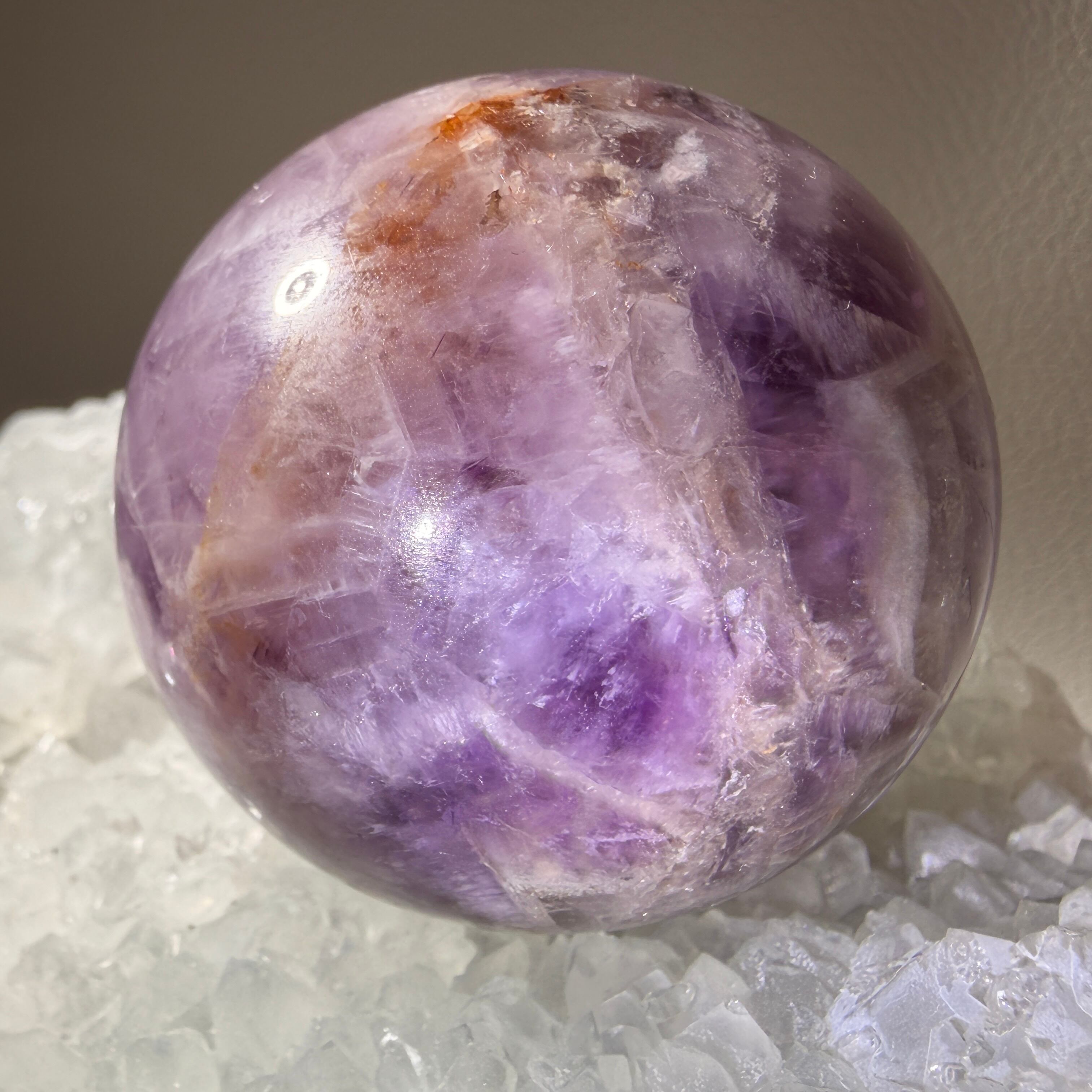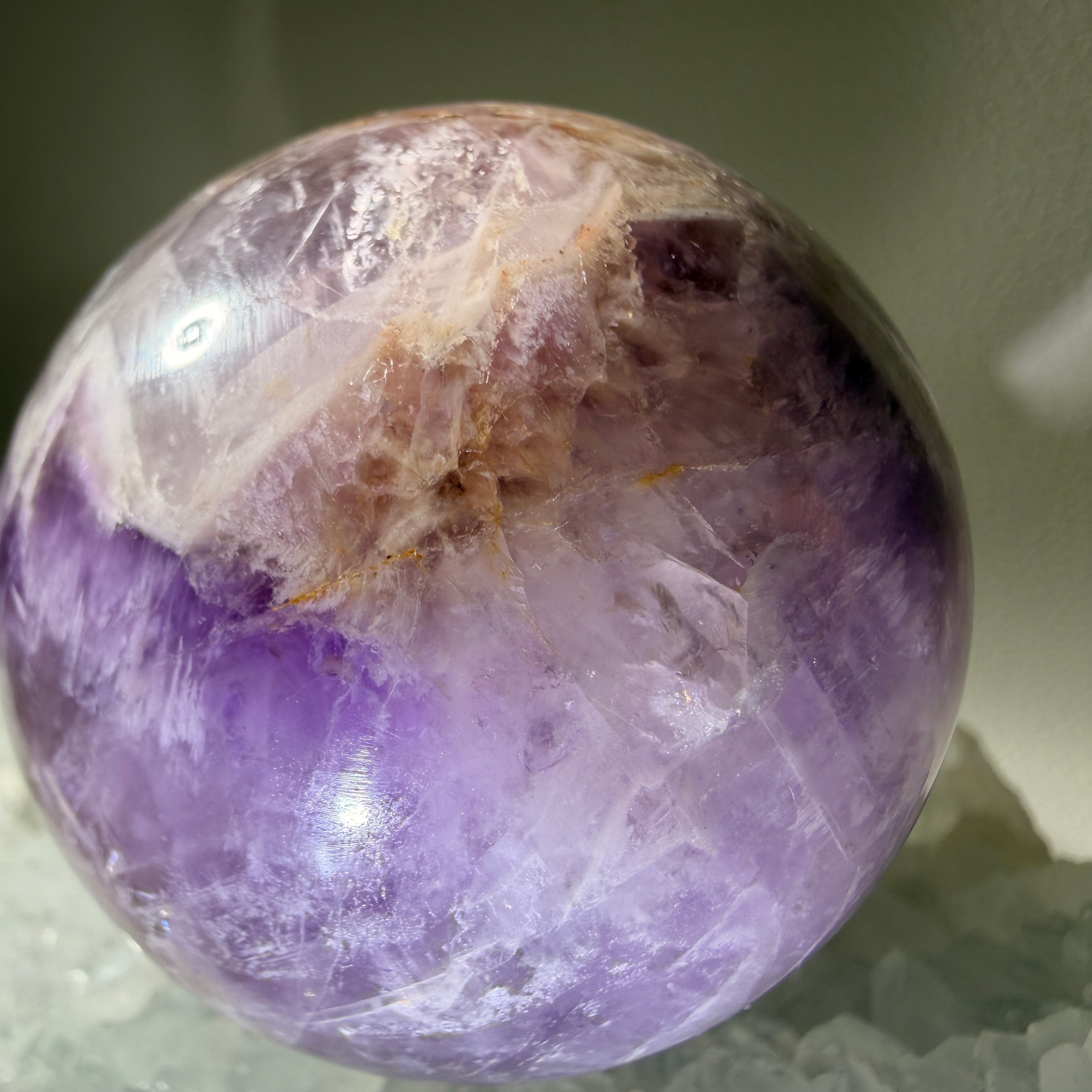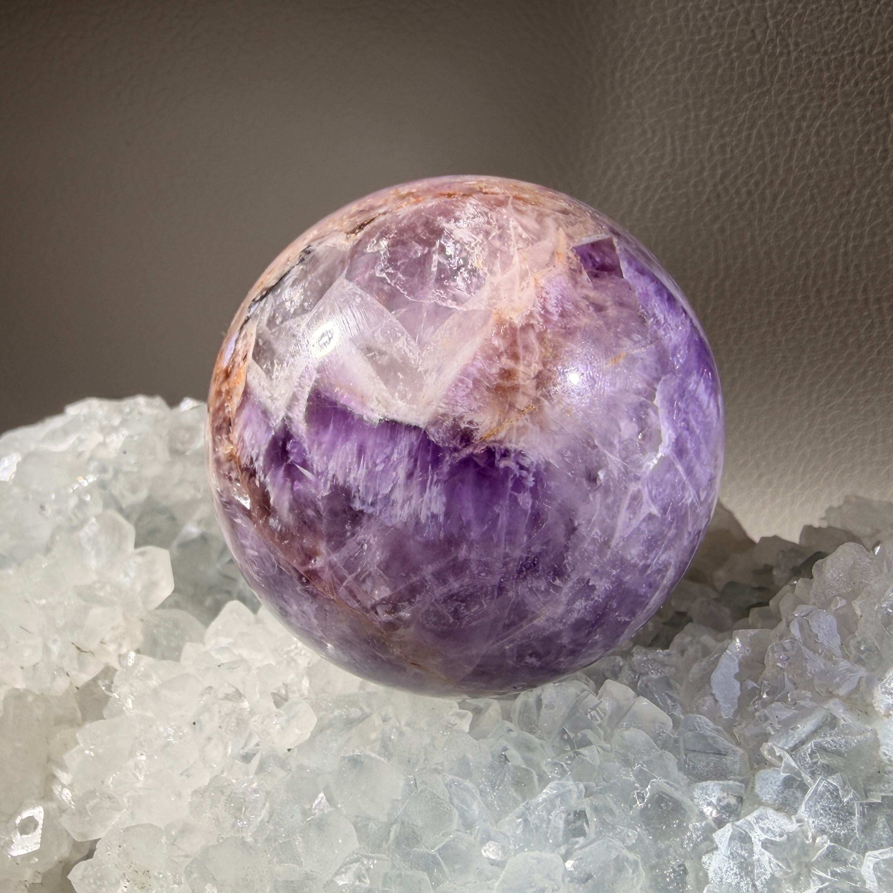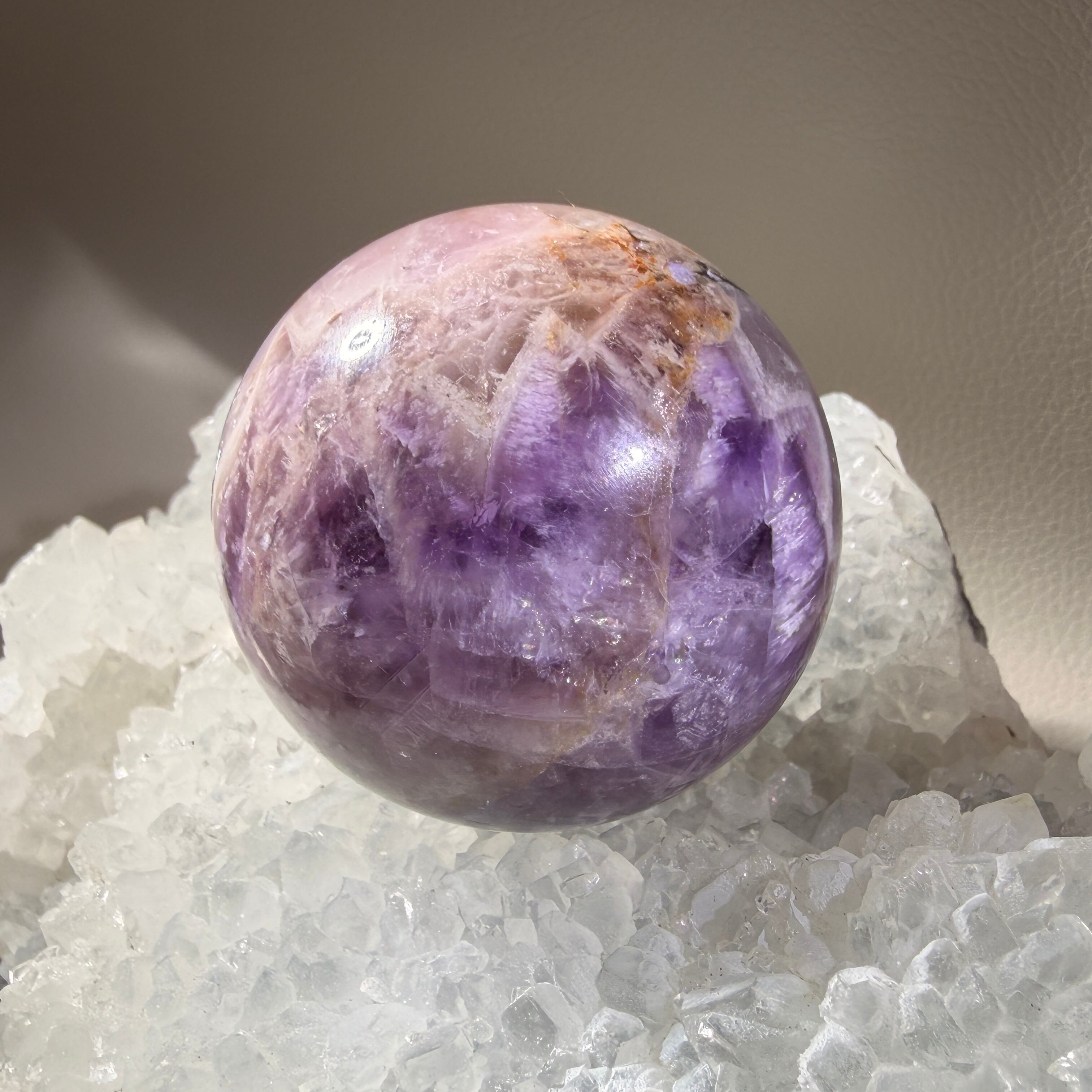 やわらかな紫の濃淡が広がる、アメジストのスフィアです。