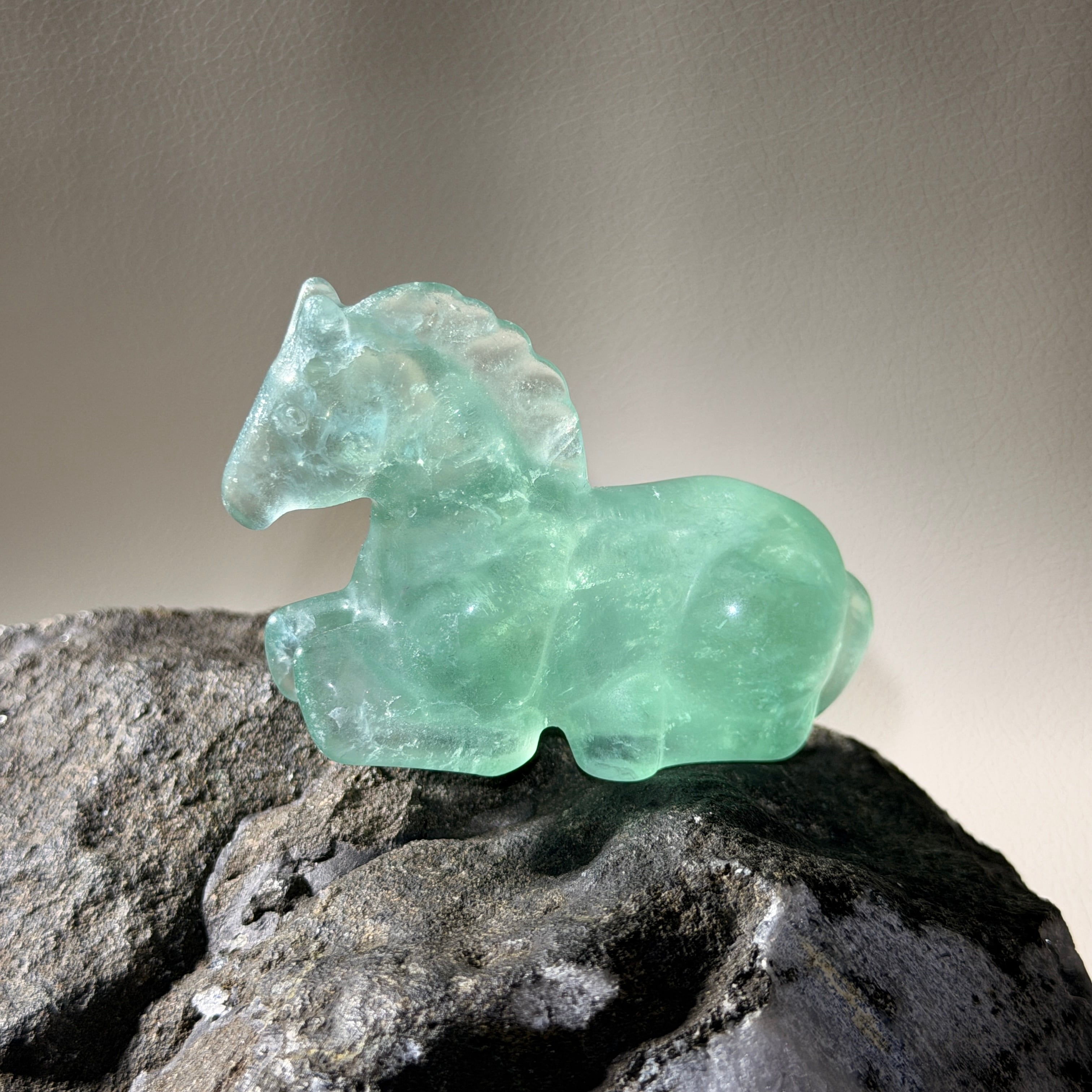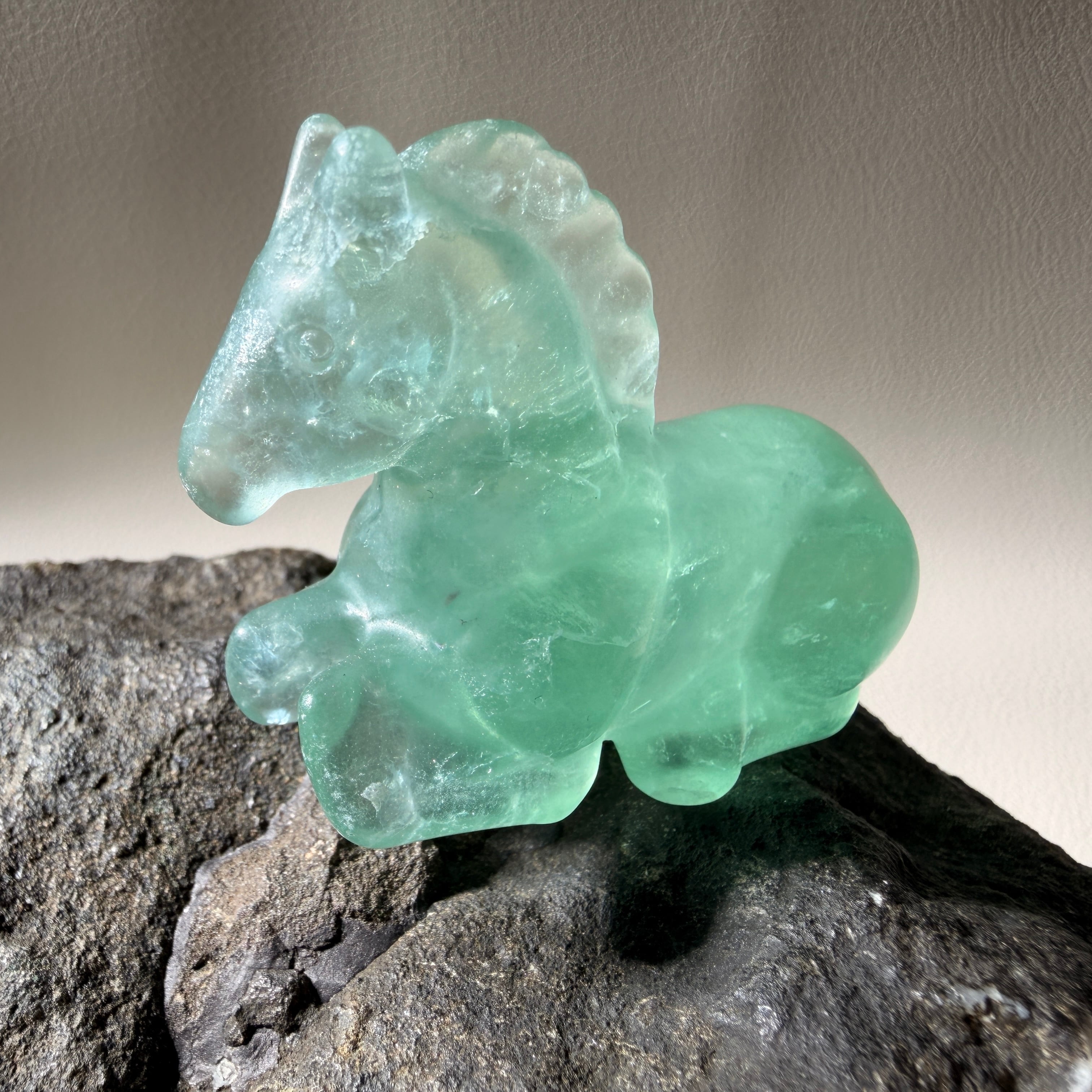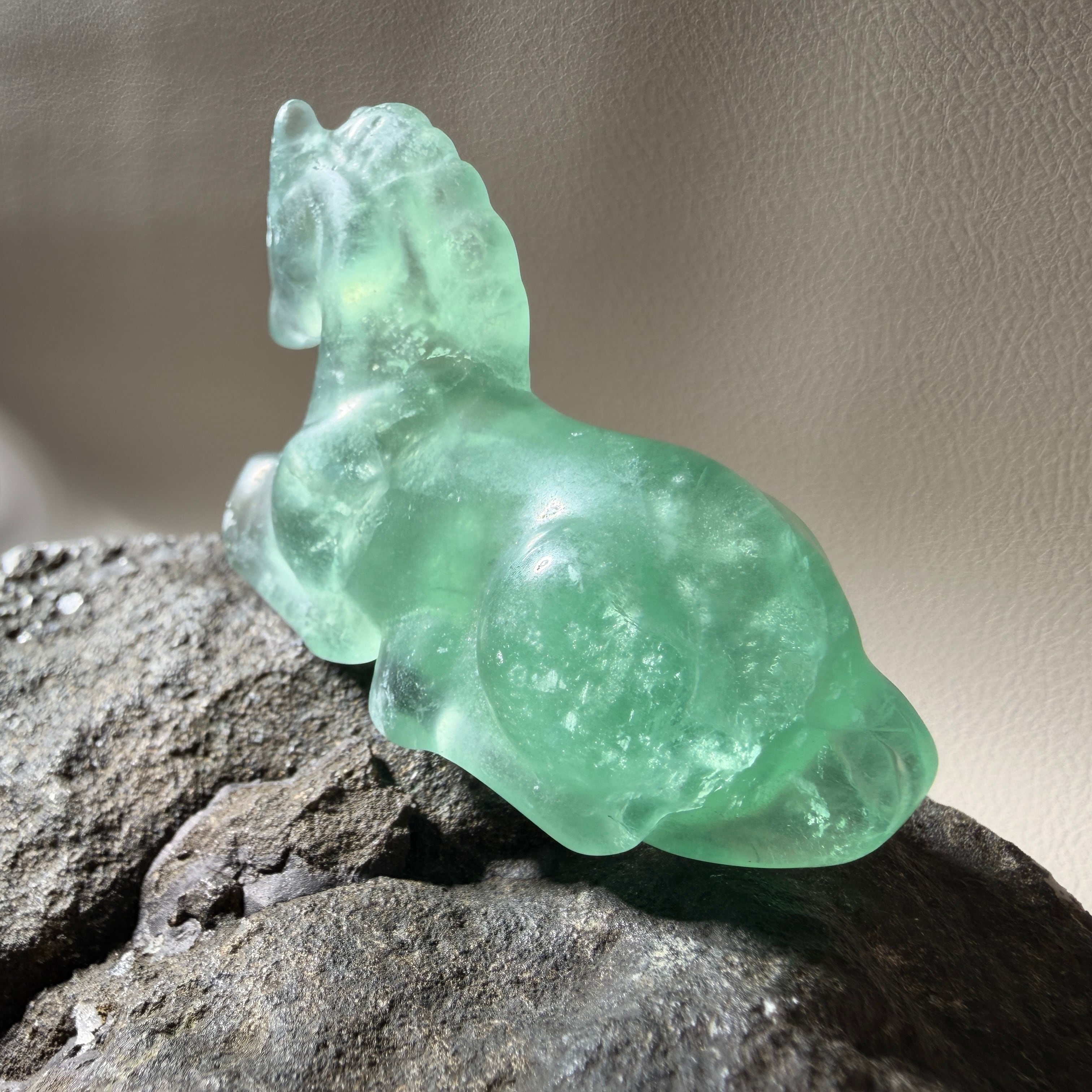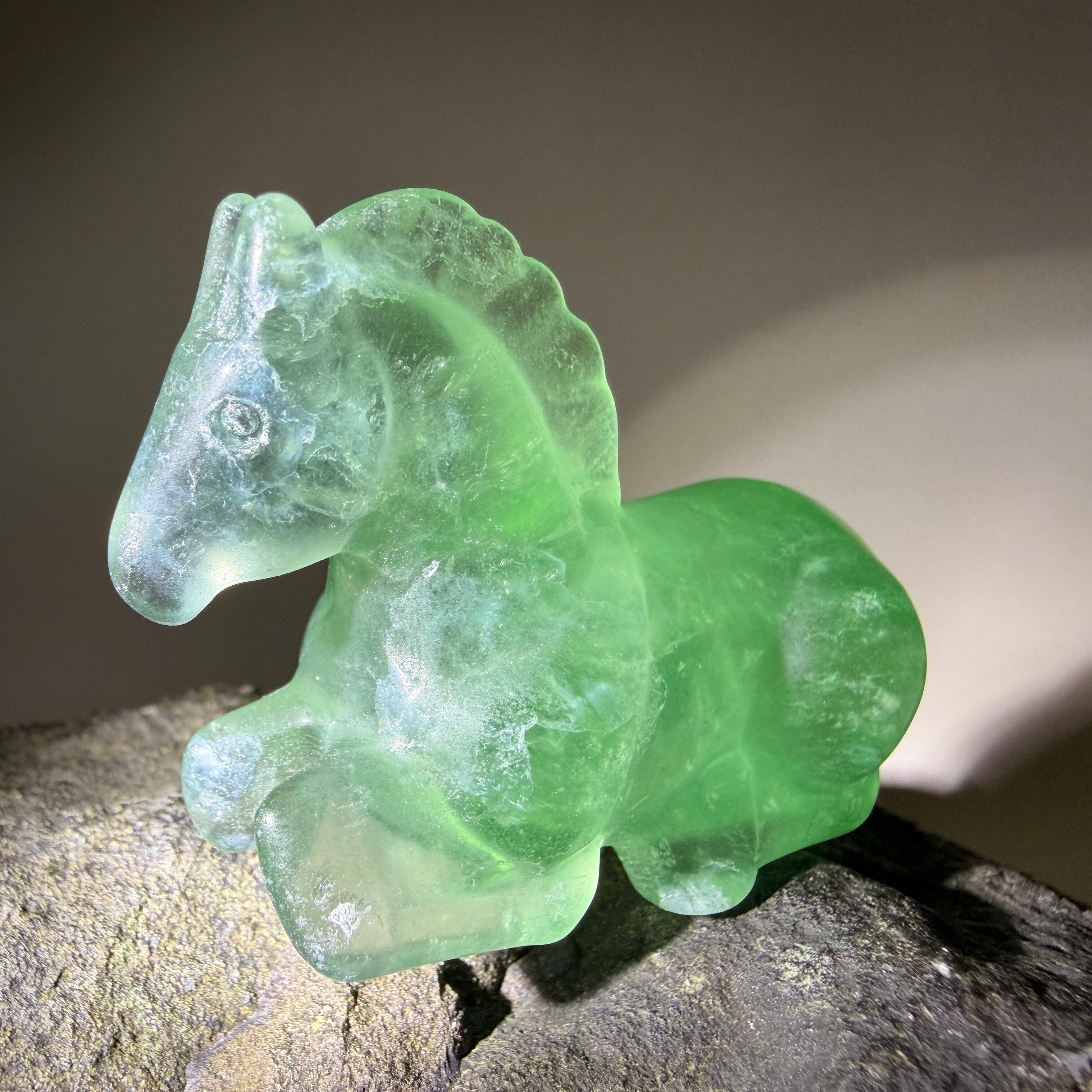 やわらかなグリーンの発色が印象的な、フローライトで表現された馬モチーフです。