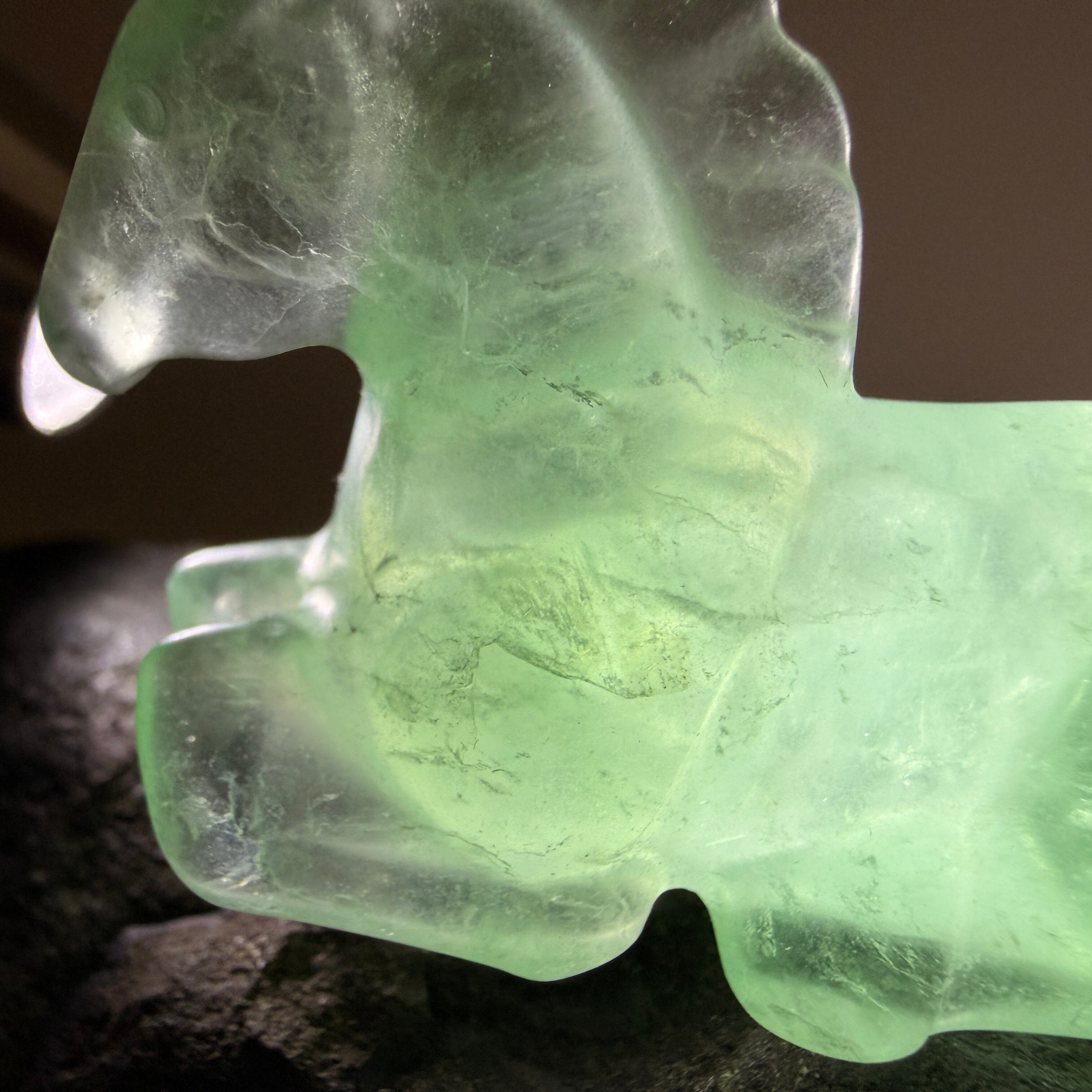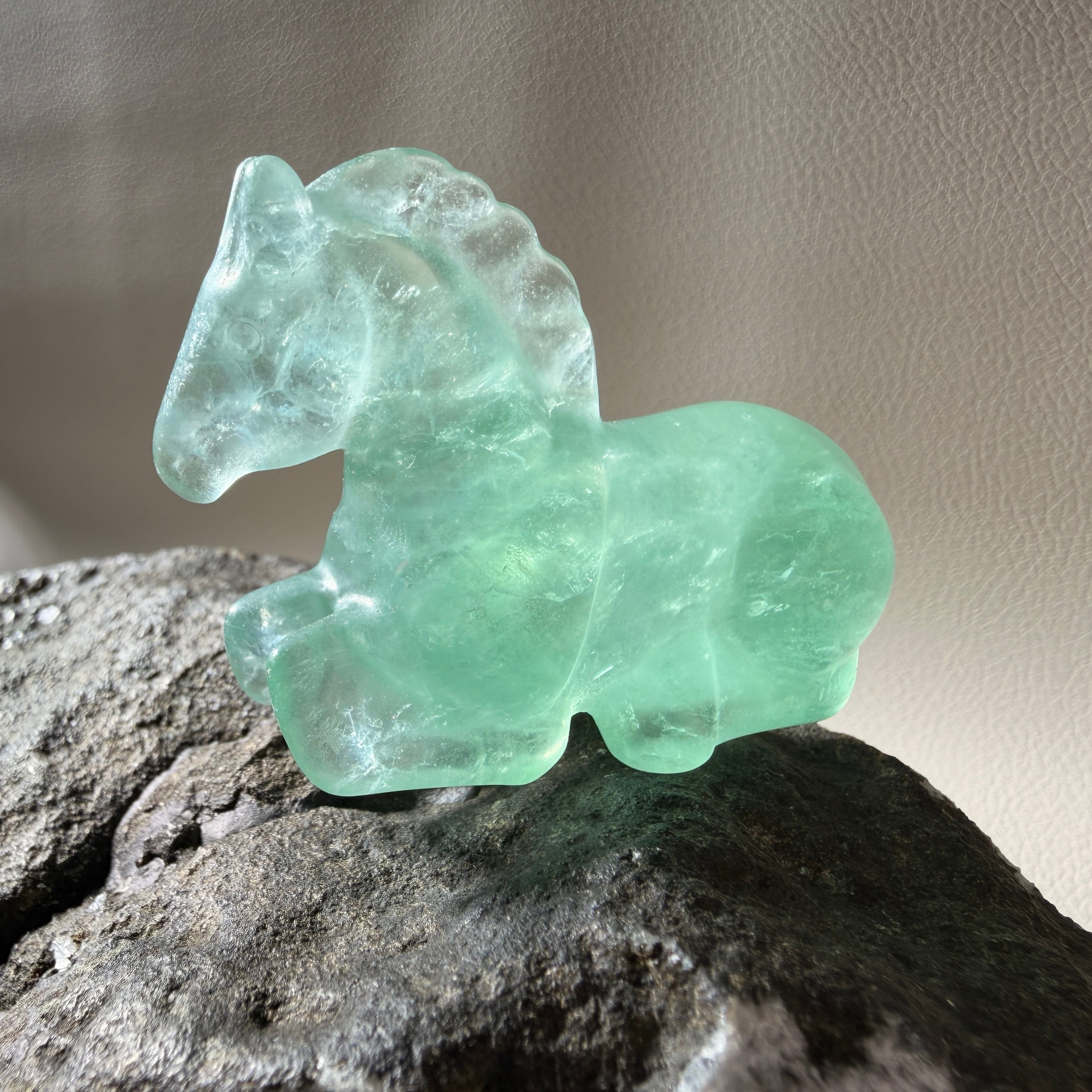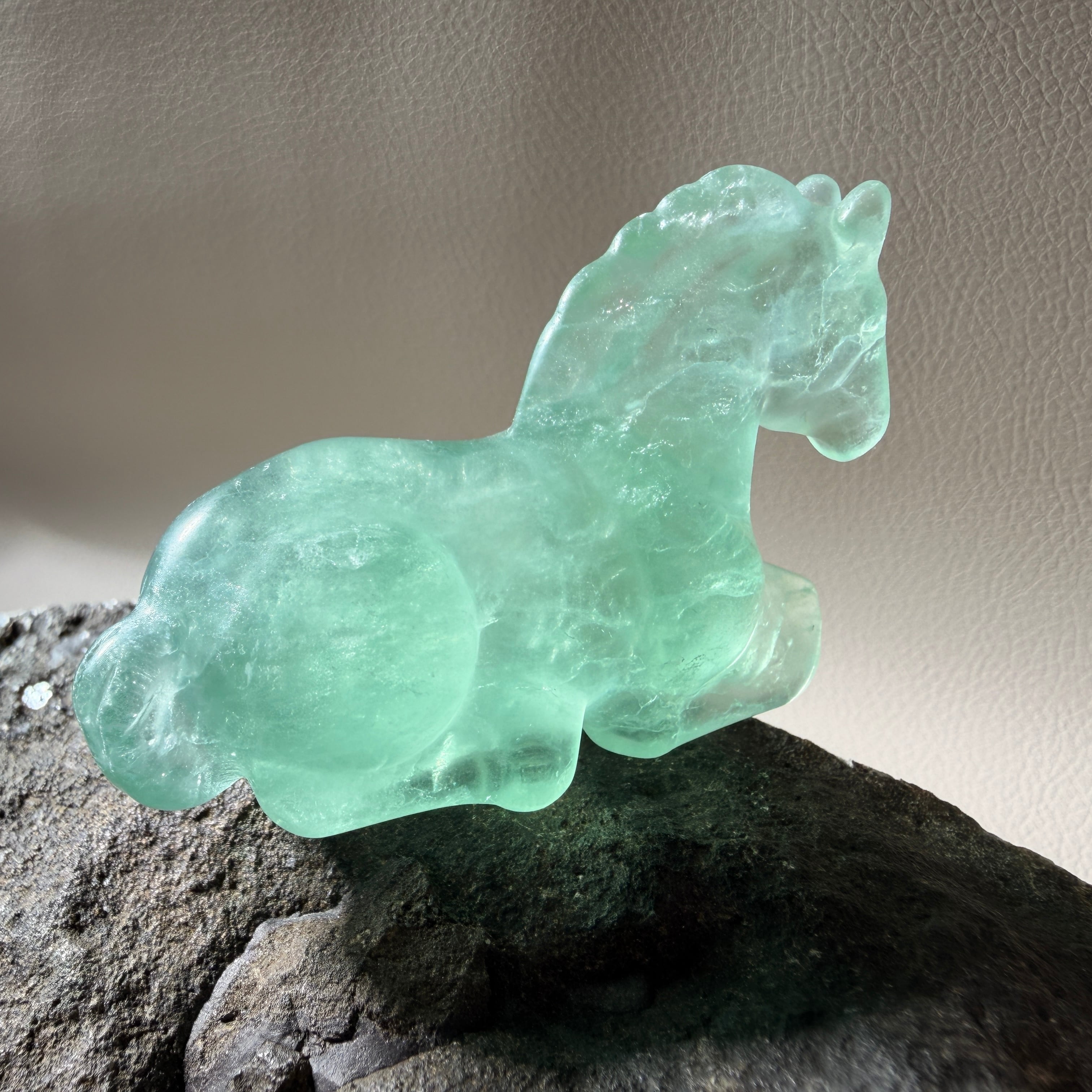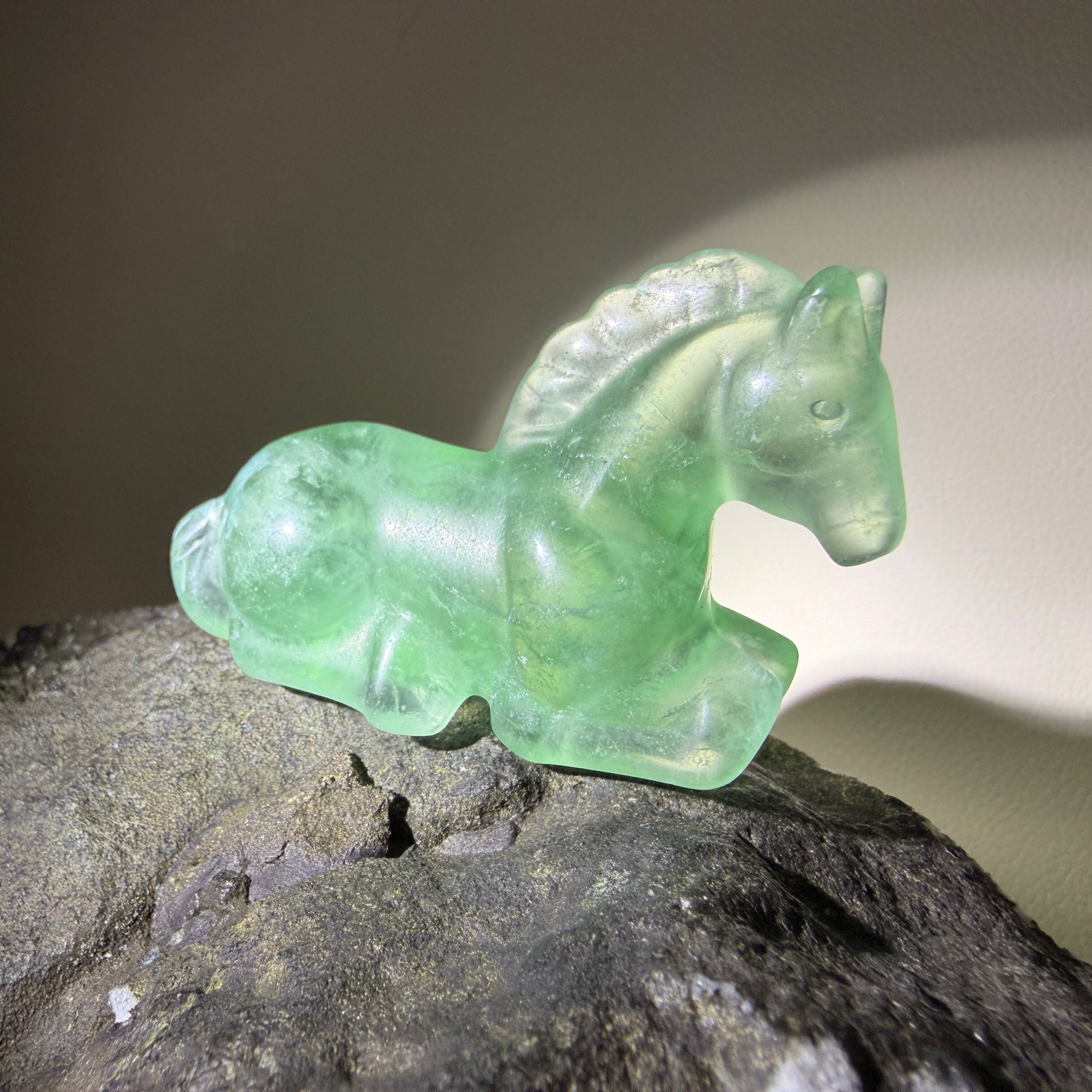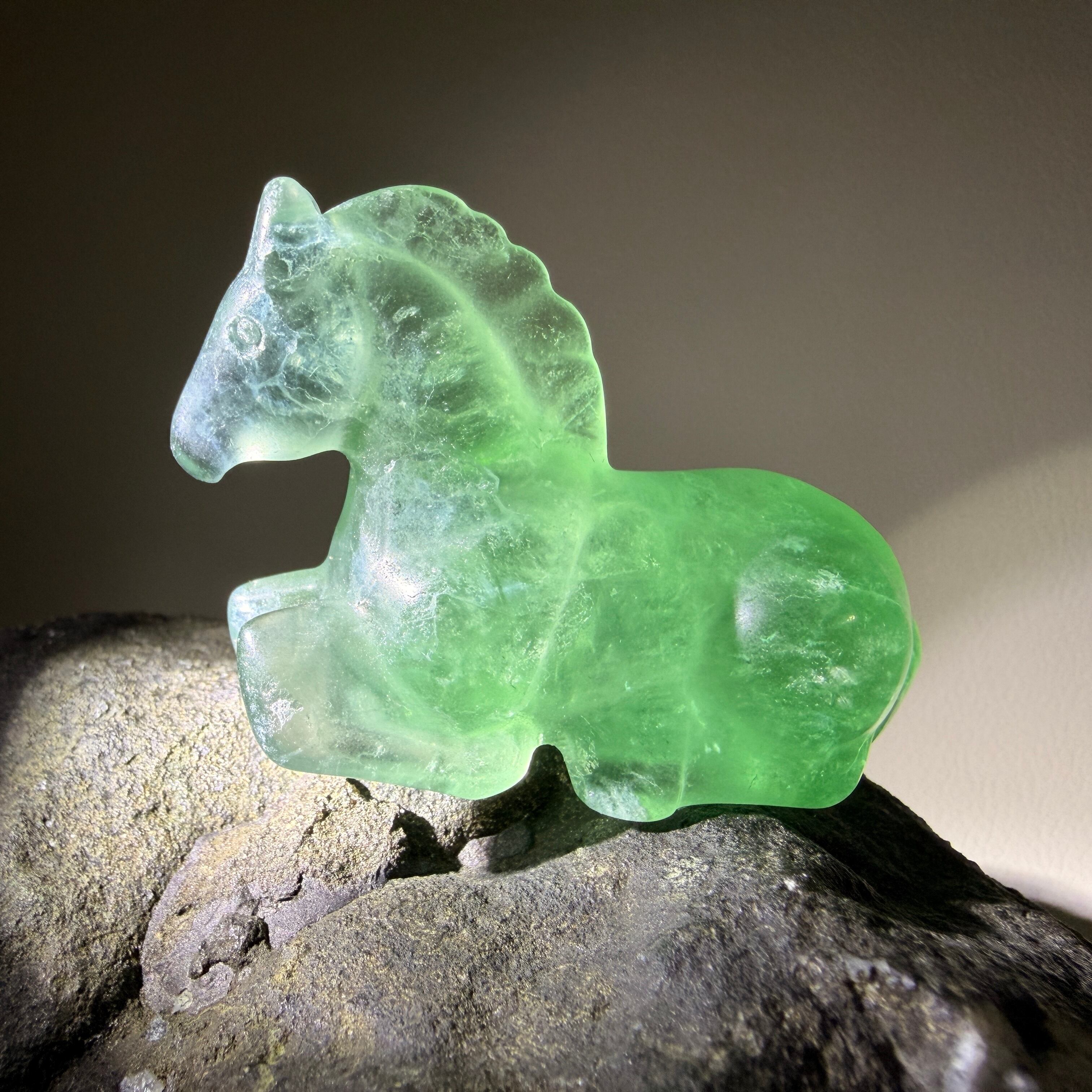 やわらかなグリーンの発色が印象的な、フローライトで表現された馬モチーフです。
