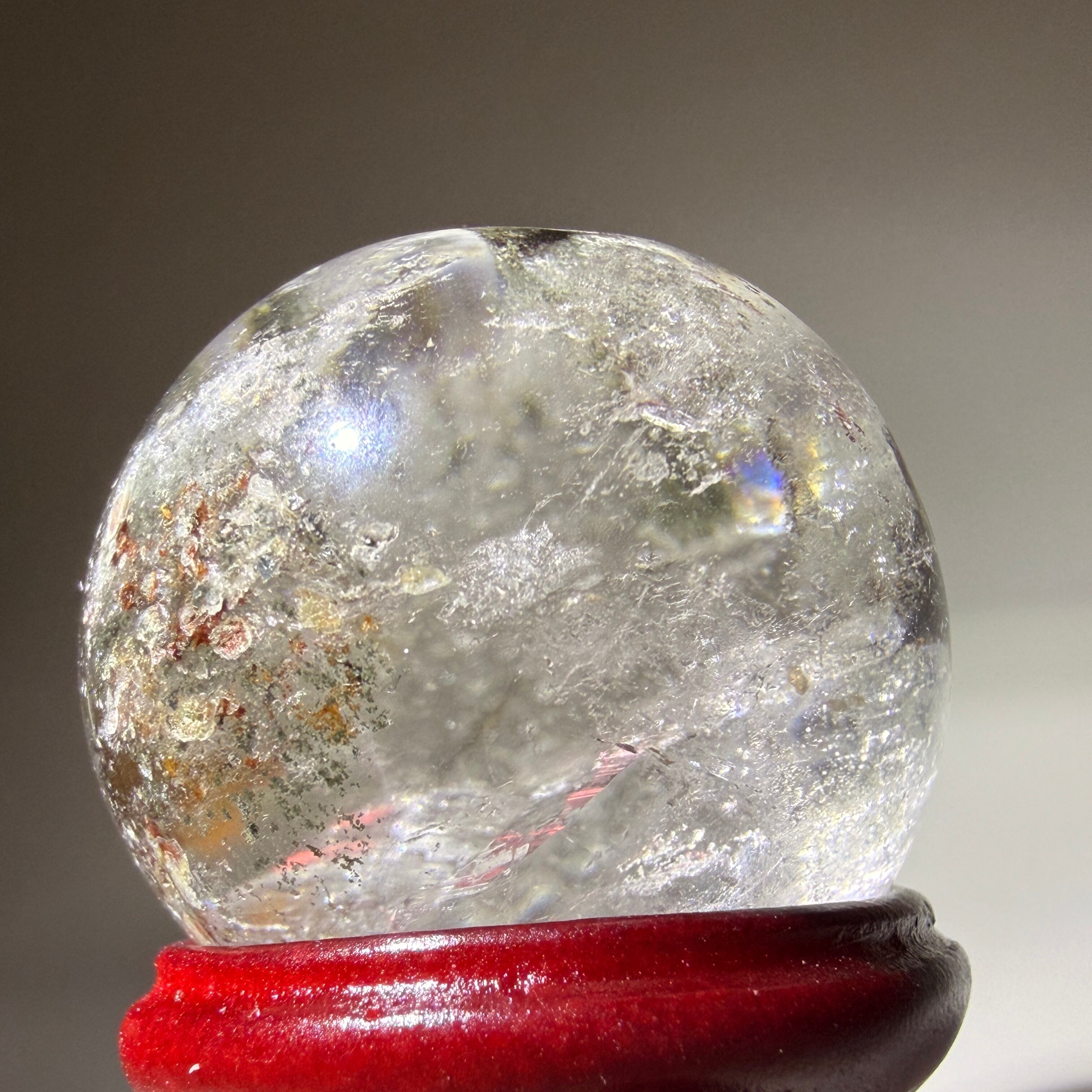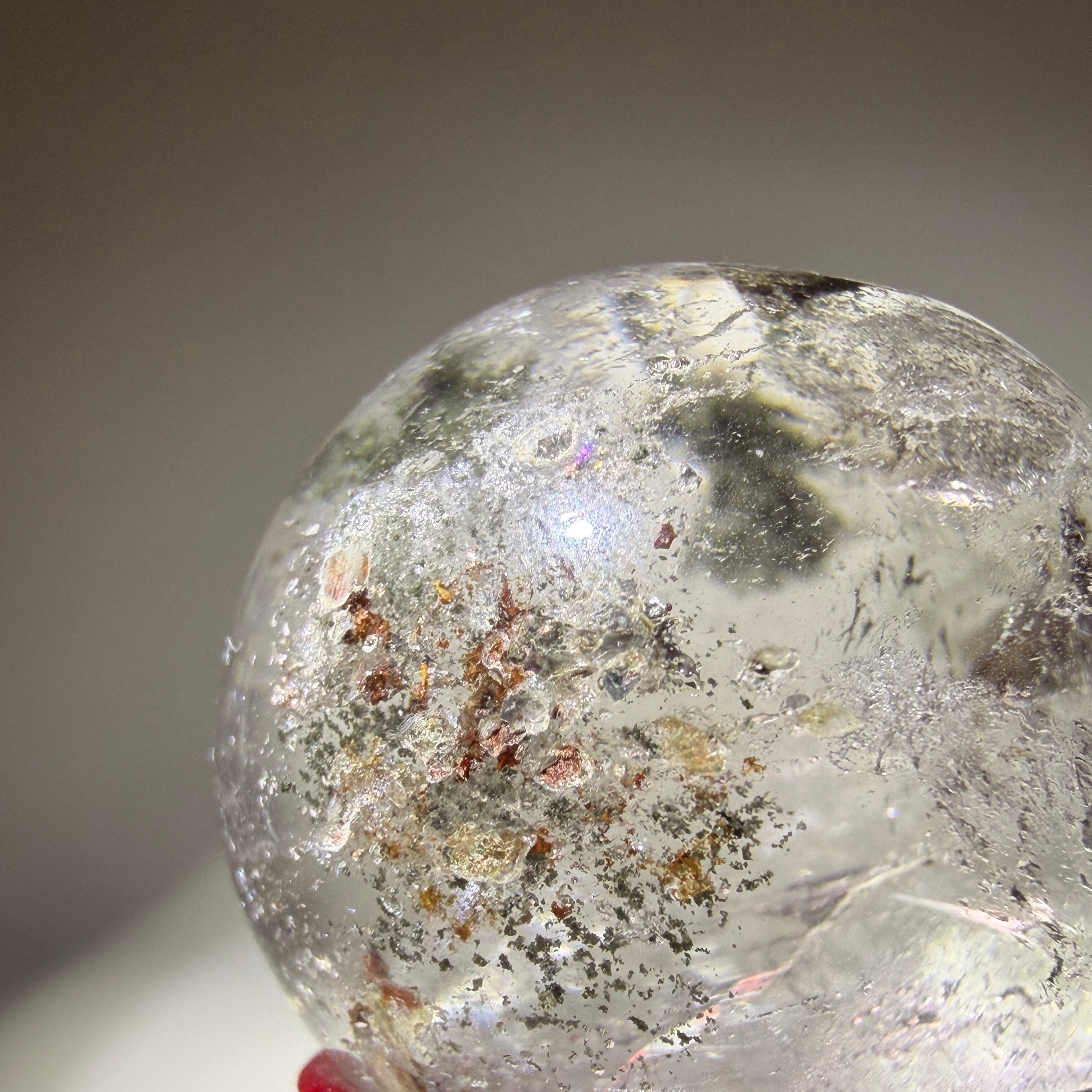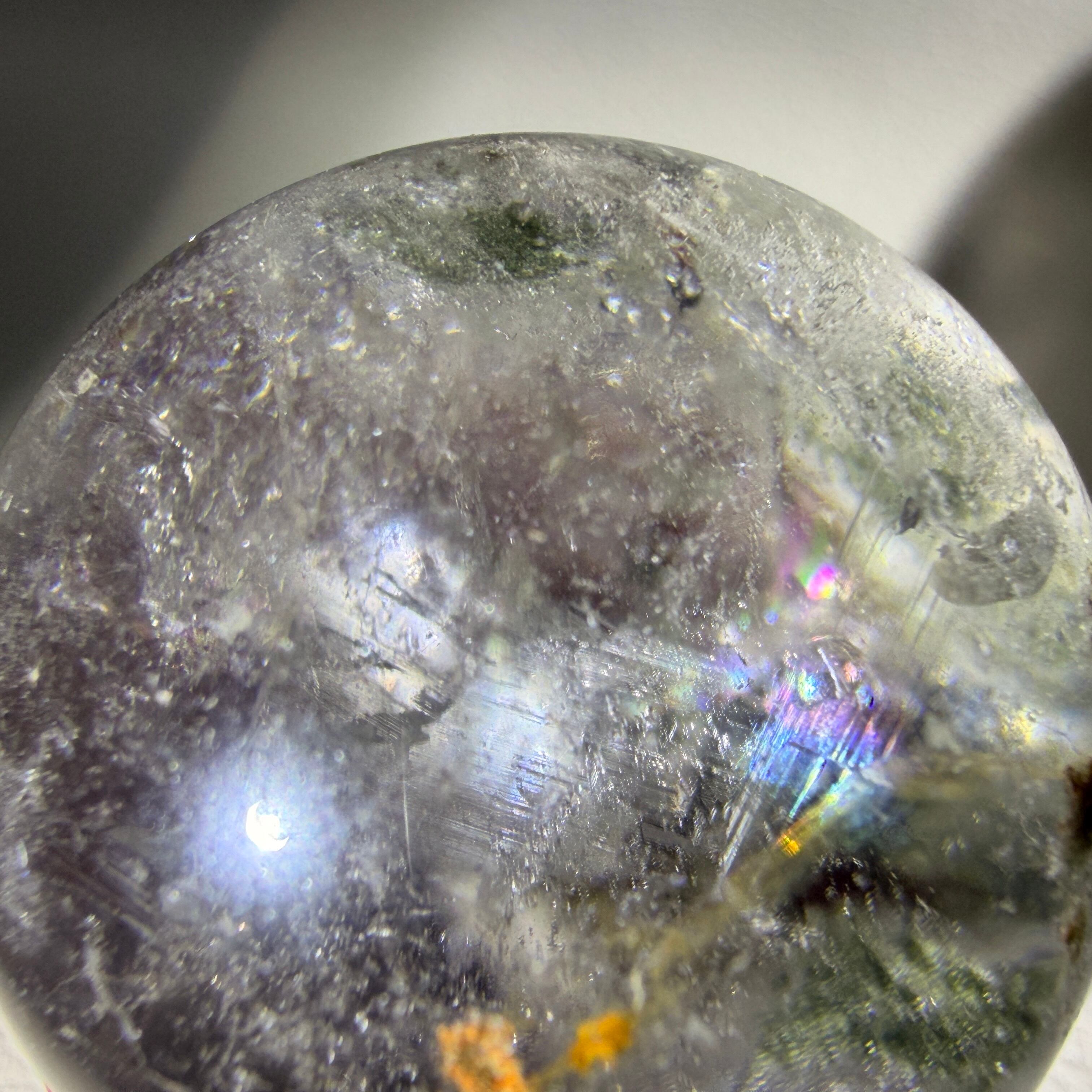 内側に景色を閉じ込めたような表情が広がる、ガーデンクオーツのスフィアです。