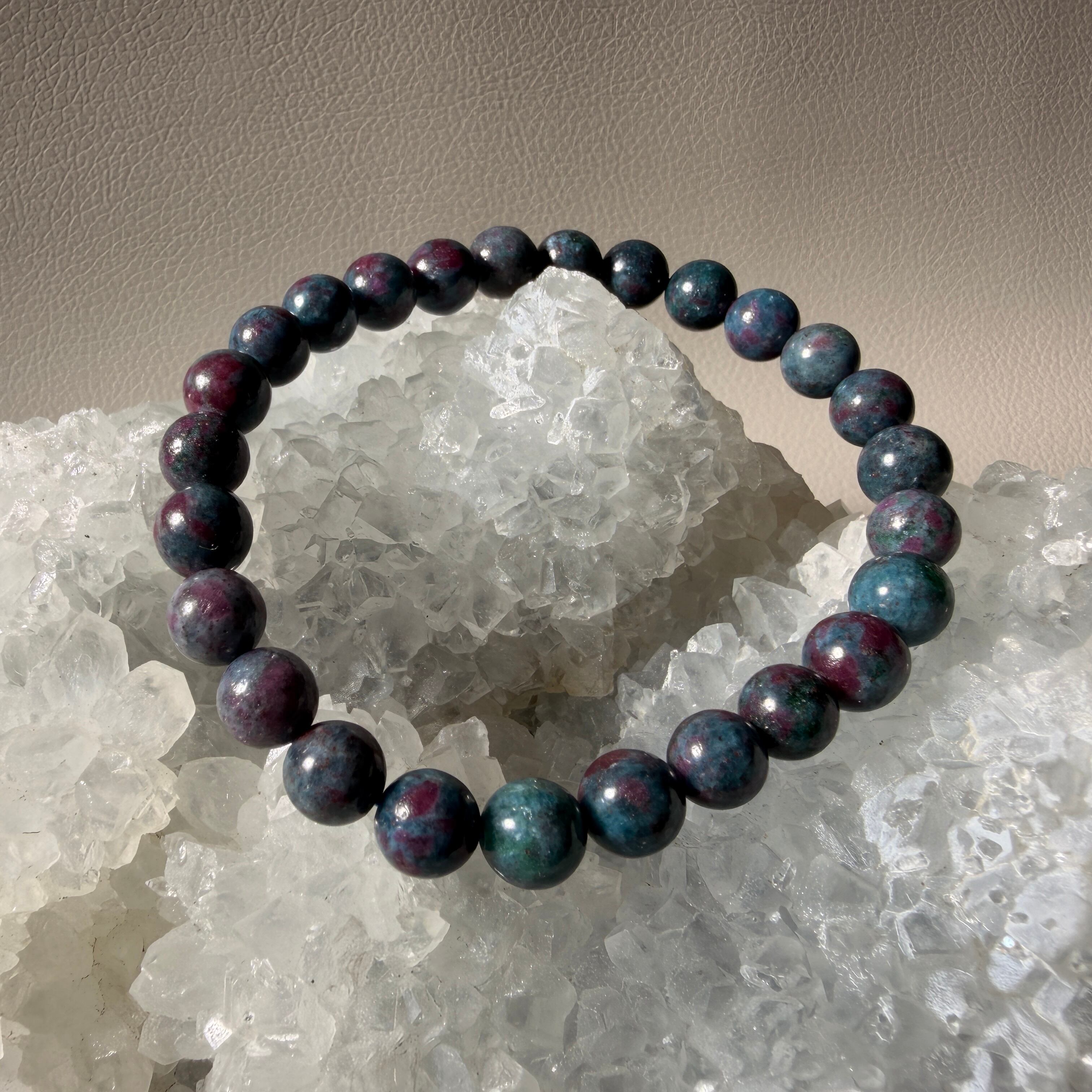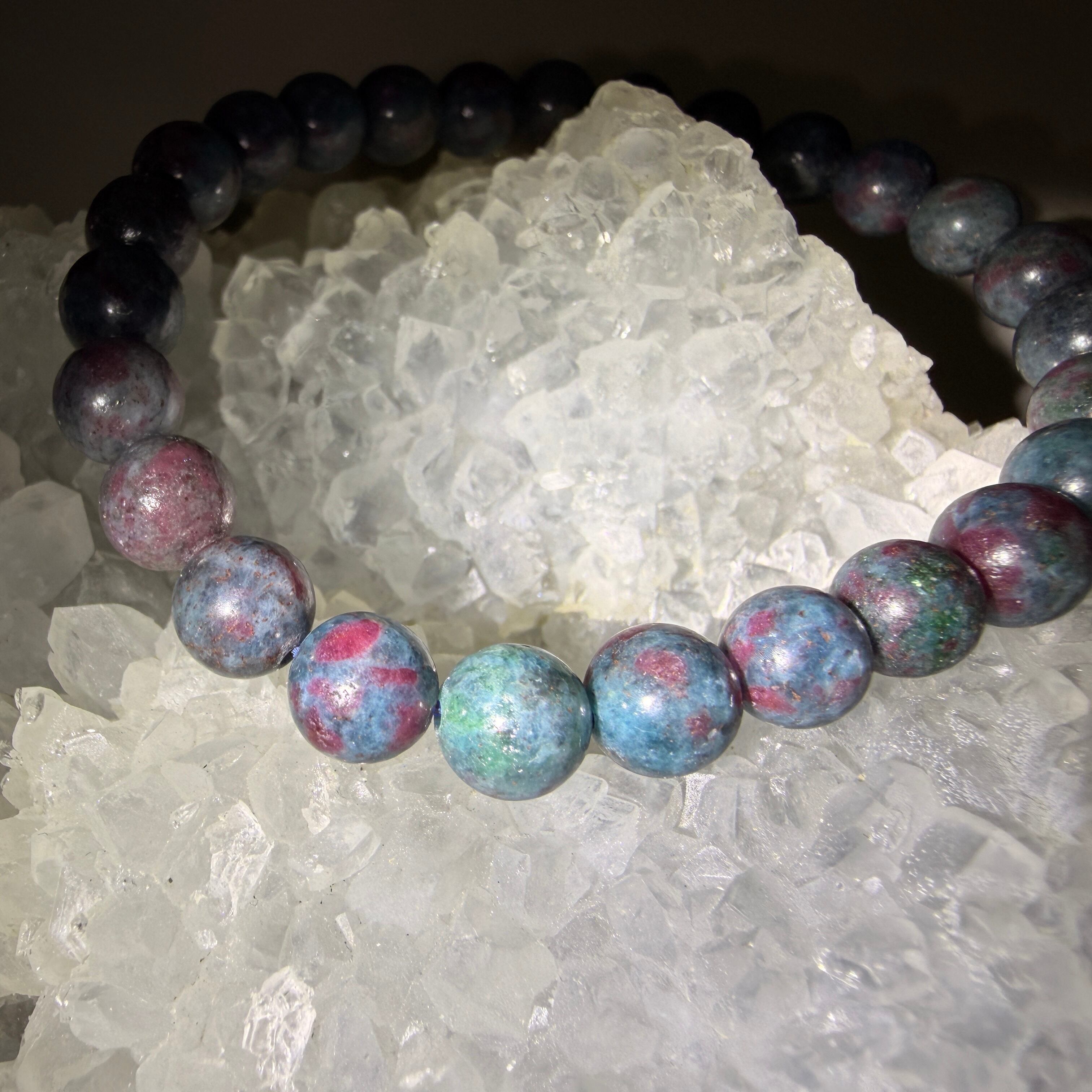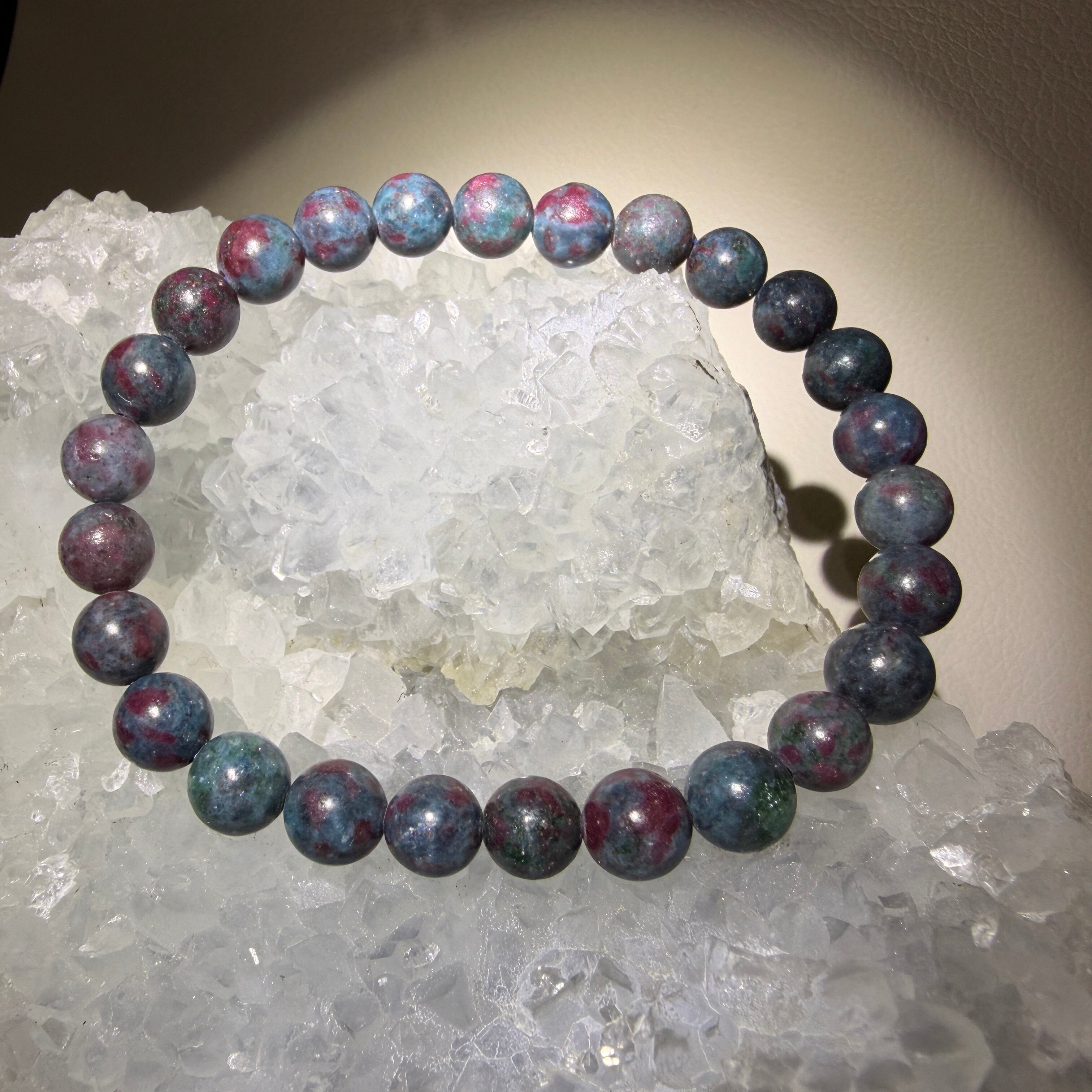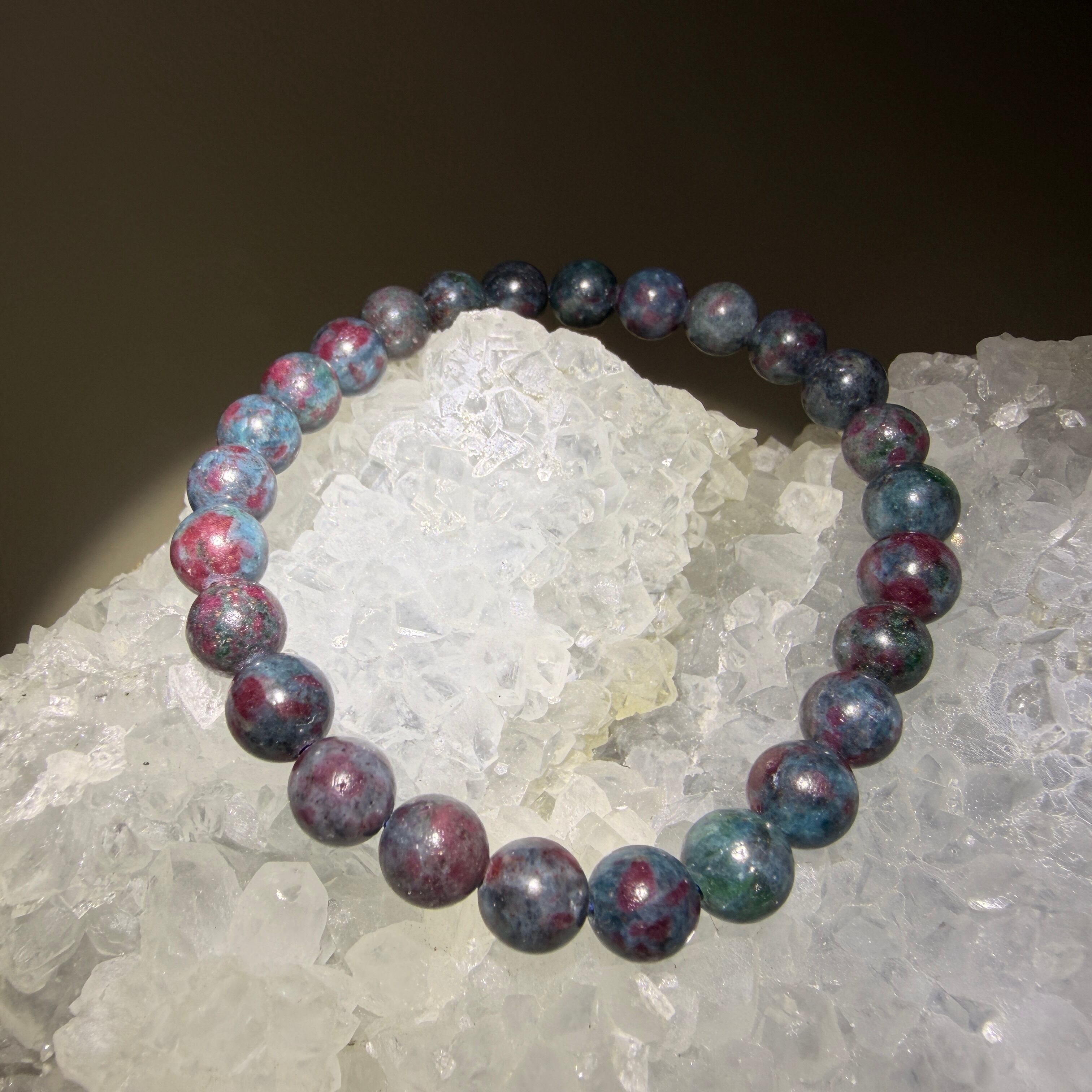 深みのあるブルーを基調に、赤紫のルビー部分が印象的に浮かぶルビーサファイアのブレスレットです。